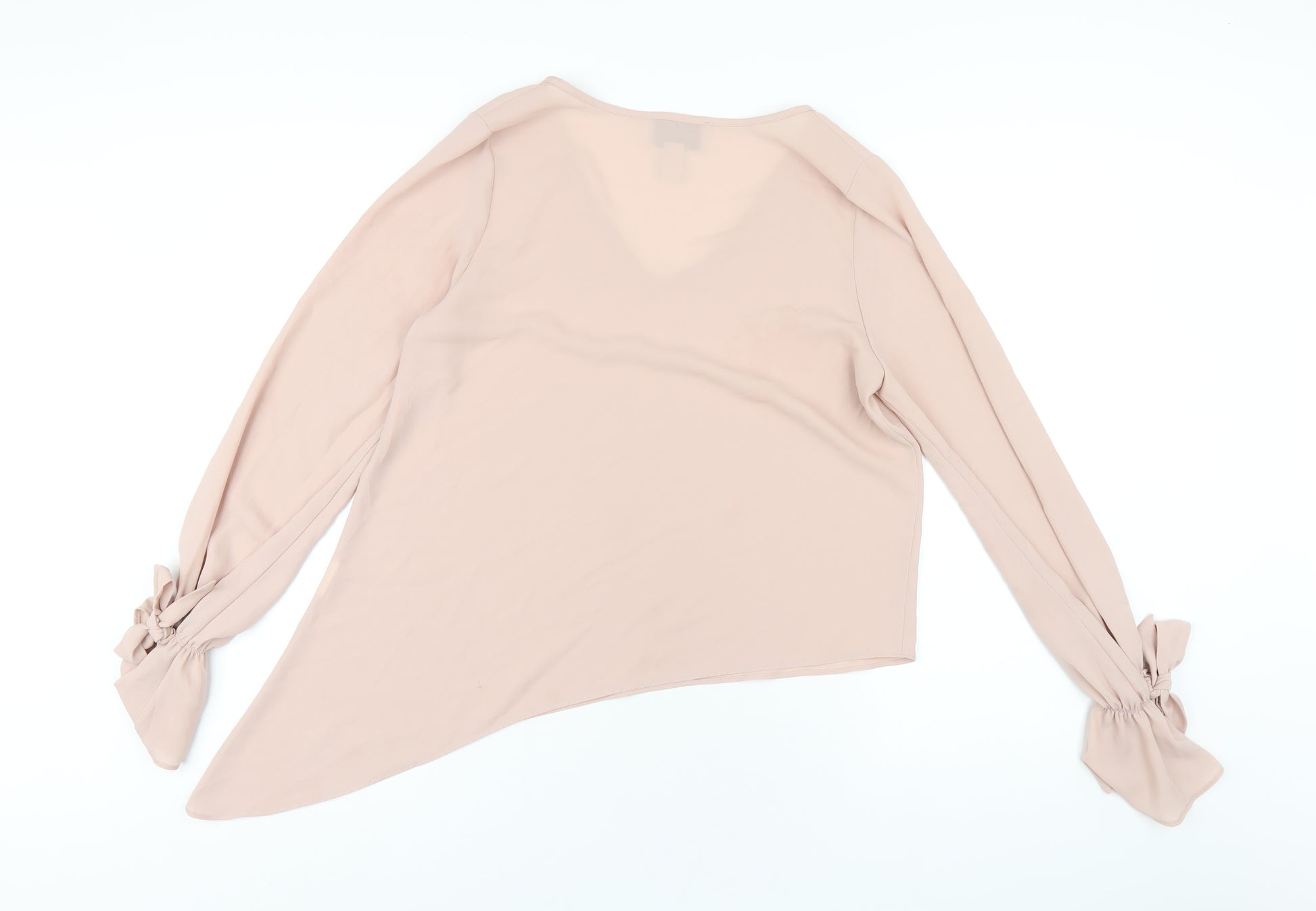 Womens Pink Polyester Basic T-Shirt Size 10 V-Neck