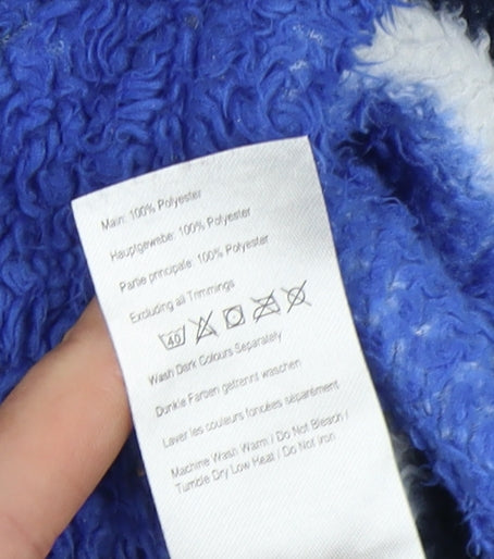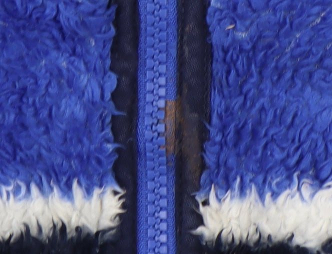 Discover comfort and style with this Joules boys' fleece sweatshirt, designed for warmth and fashion in cooler months. Crafted entirely from soft polyester, this blue striped pullover is perfect for everyday casual wear. The design features a convenient zip closure and high neckline to keep your little one snug. Ideal for the winter season, the heavy fleece construction ensures excellent insulation, and its regular fit allows for easy layering. Whether it's a day at school or a weekend adventure, this sweatshirt offers a cozy embrace, embodying both practicality and a charming style with its classic striped pattern. It is machine washable, making it a practical choice for busy parents. Despite some light marks near the zipper, this piece remains in very good condition, promising lasting durability for your child's seasonal wardrobe. Make this versatile Joules sweatshirt a staple in your child's clothing collection.