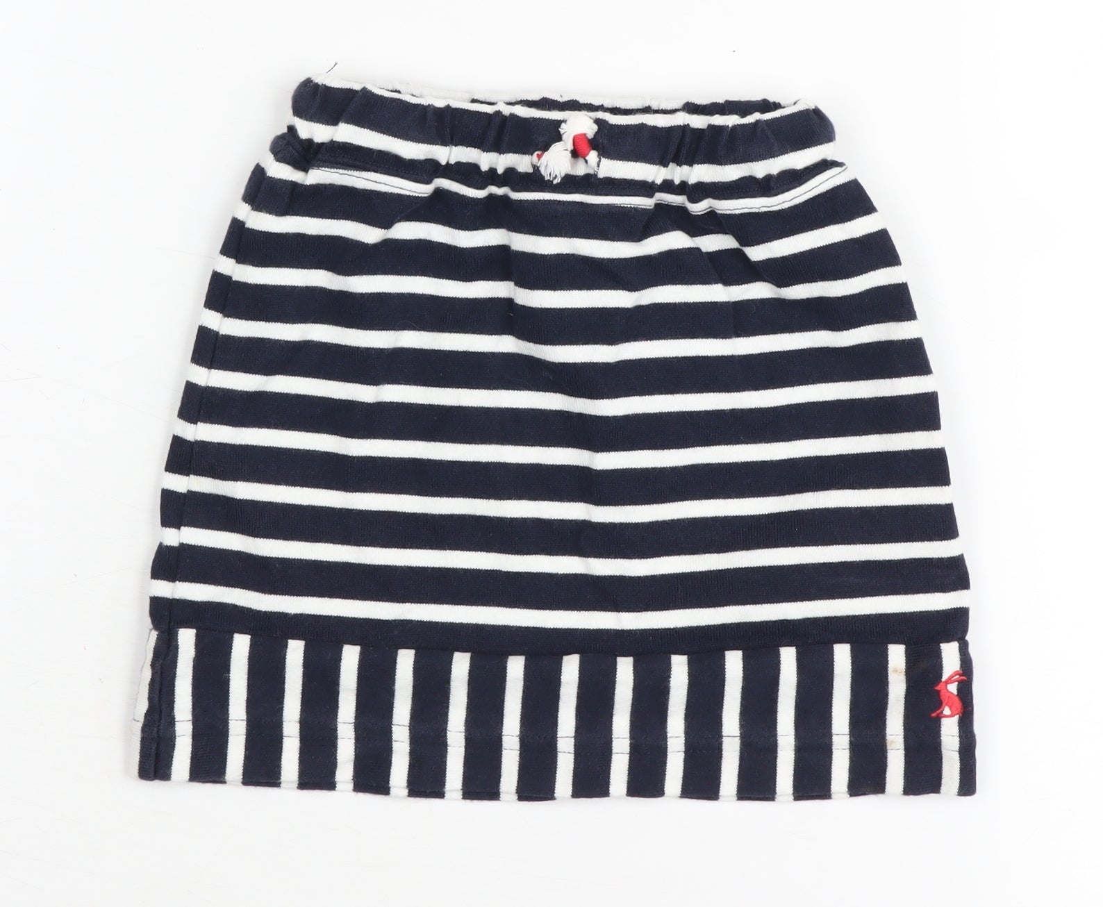 Introducing this delightful Joules skirt, perfect for adding a touch of style to your little one's summer wardrobe. Crafted from 100% soft cotton, this skirt is designed with comfort in mind, making it an ideal choice for those warm weather outings. The classic black and white striped pattern gives a nod to a nautical theme, ensuring it stands out wherever your child goes. Its elastic waist and handy drawstring closure offer convenience and ease of wear, allowing for quick and easy dressing. In excellent condition, this skirt maintains its vibrant colours and fabric integrity, though it lacks original sales tags. Despite this, it's ready to be worn and enjoyed. With a short skirt length and stylish straight and pencil cut, it is perfect for casual outings and playdates. Whether paired with a simple tee or a fancier top, it is sure to complement any outfit. Machine washable for easy care, it's a practical addition to any girl's wardrobe. Don't miss out on this charming piece that combines style, comfort, and practicality.