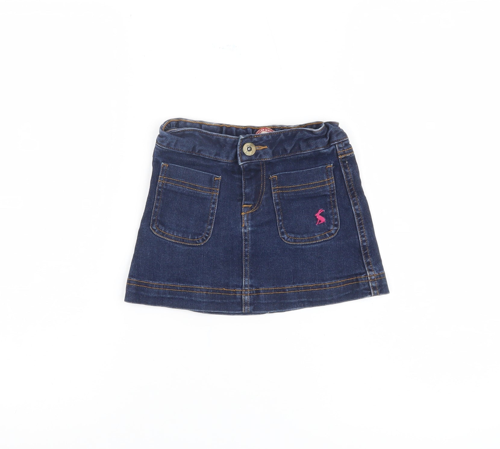Discover the perfect blend of style and comfort with this Joules girls' mini denim skirt. Crafted from a durable mix of cotton and elastane, this charming blue skirt offers a comfortable fit, ideal for everyday wear. Adorned with a button closure and belt loops, it provides a secure fit with an adjustable waist, making it practical for growing kids. The skirt features delightful logo patches and front pockets for added flair. Designed in a classic denim fabric, it's suitable for all seasons. Perfect for casual outings or playdates, this skirt pairs effortlessly with any top, promising a versatile addition to your child's wardrobe. Ensure easy care with machine washability. Although it doesn't include tags, it remains in excellent condition, ready to bring joy and style to its new owner. Get this delightful Joules denim skirt today and let your little one step out in chic comfort.