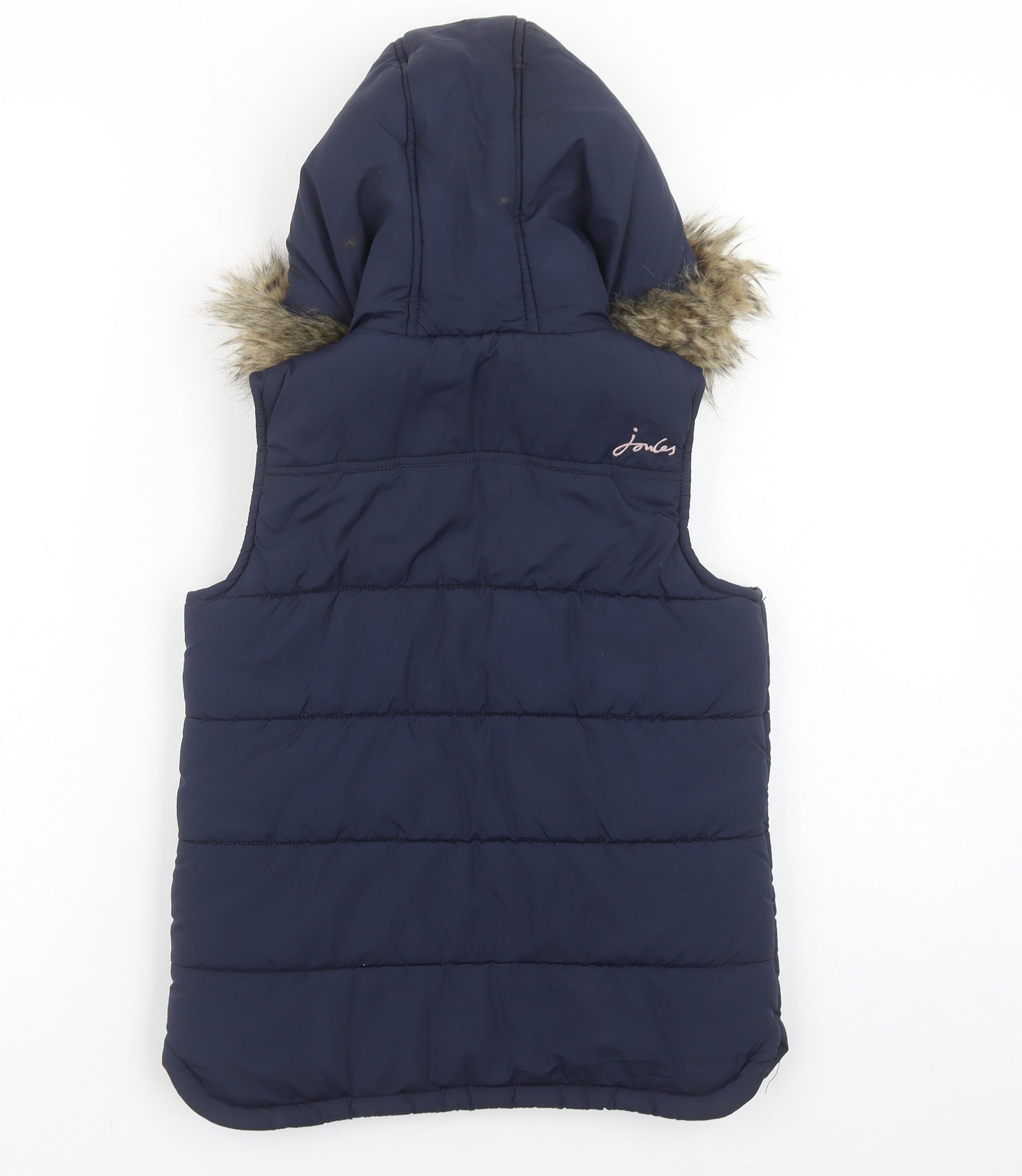 Girls Blue Puffer Hooded Gilet 7-8 Years Faux Fur Trim Waistcoat