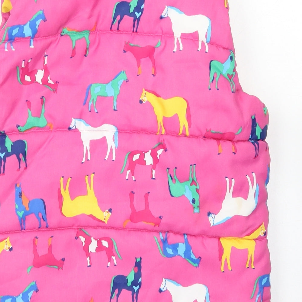 Girls Pink Gilet Coat Size 7 Years Zip - Horse Print
