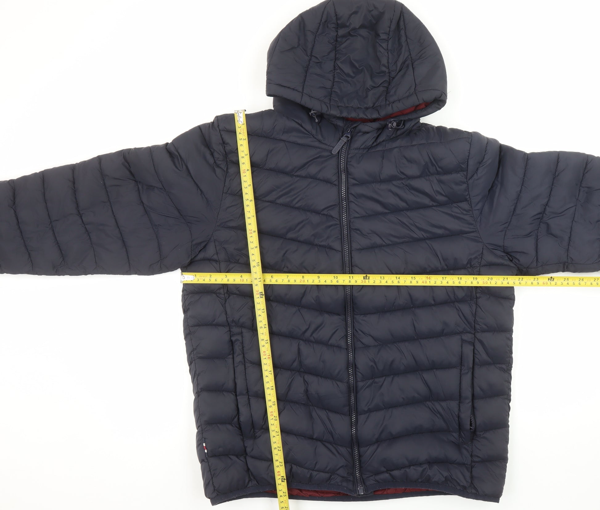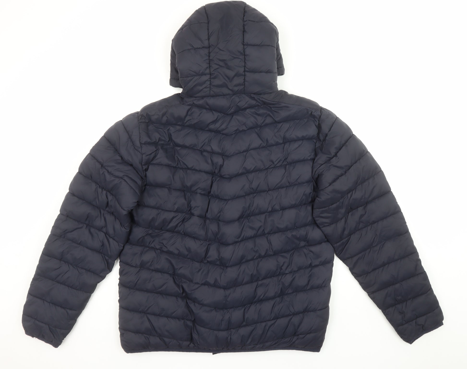 Men's Navy Hooded Puffer Jacket L Quilted Polyamide Winter Coat