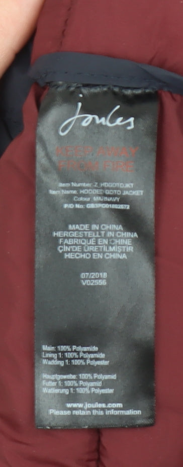 Stay comfortably warm and stylish with this Joules Men's Navy Hooded Puffer Jacket, designed to be lightweight yet highly insulating for the colder months. Crafted from durable 100% polyamide with soft polyester wadding, this jacket delivers a cosy and practical layer perfect for winter walks, travel, or everyday outdoor activities. The quilted construction provides a classic look while maximising heat retention, ensuring you remain comfortable throughout the day. Featuring a convenient full-zip front, attached hood, and secure side pockets, this jacket offers both functionality and comfort. The sleek navy blue colour gives it a timeless appeal that complements any outfit, from casual jeans to smarter trousers. Designed in Great Britain and made with attention to detail, its signature Joules logo adds a subtle touch of authenticity and quality. The mid-length cut provides the ideal balance between coverage and freedom of movement, while the lightweight yet padded design ensures ease of wear without bulk. This jacket is fully machine washable, making it easy to care for and perfect for regular use. The interior lining provides extra warmth, while the stand-up collar helps block out wind. Whether heading out for a brisk walk, commuting to work, or travelling, this Joules puffer jacket offers dependable warmth and contemporary style. In excellent pre-owned condition with no signs of damage, it’s ready to wear and ideal for men seeking versatile outerwear that blends practicality with understated British style. A dependable winter essential from a trusted brand, this Joules jacket is a must-have for your cold weather wardrobe.