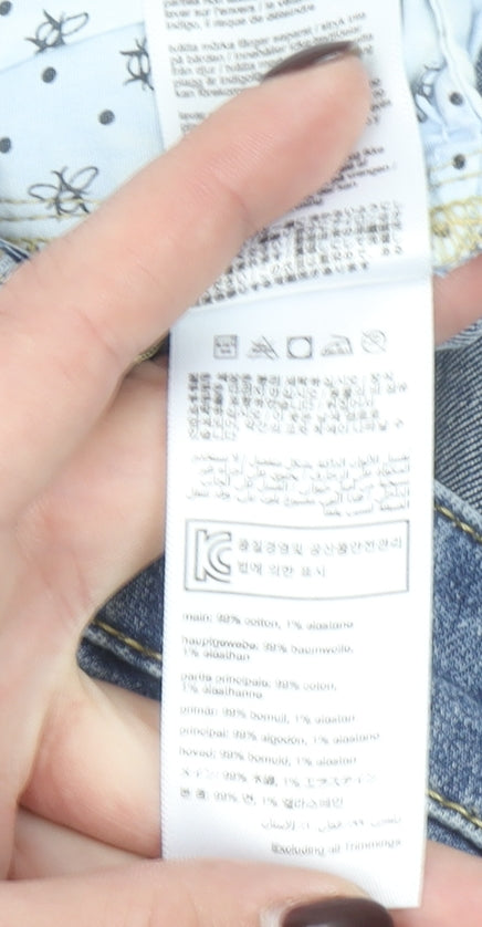 Primark Women Blue Denim Cut-Off Shorts Size 12 High Waist Casual
