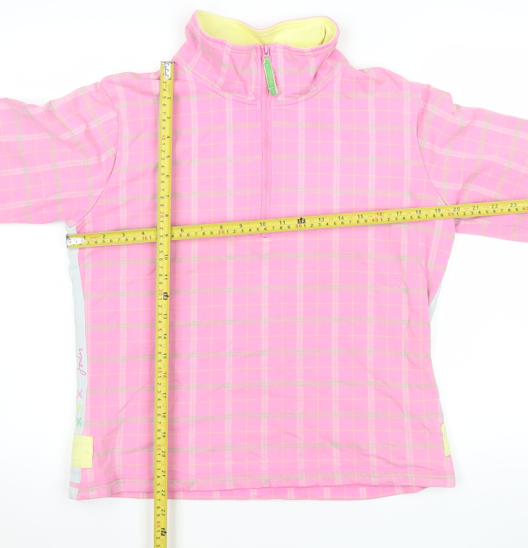 Women Pink Check 1/2 Zip Pullover Sweatshirt Size 14