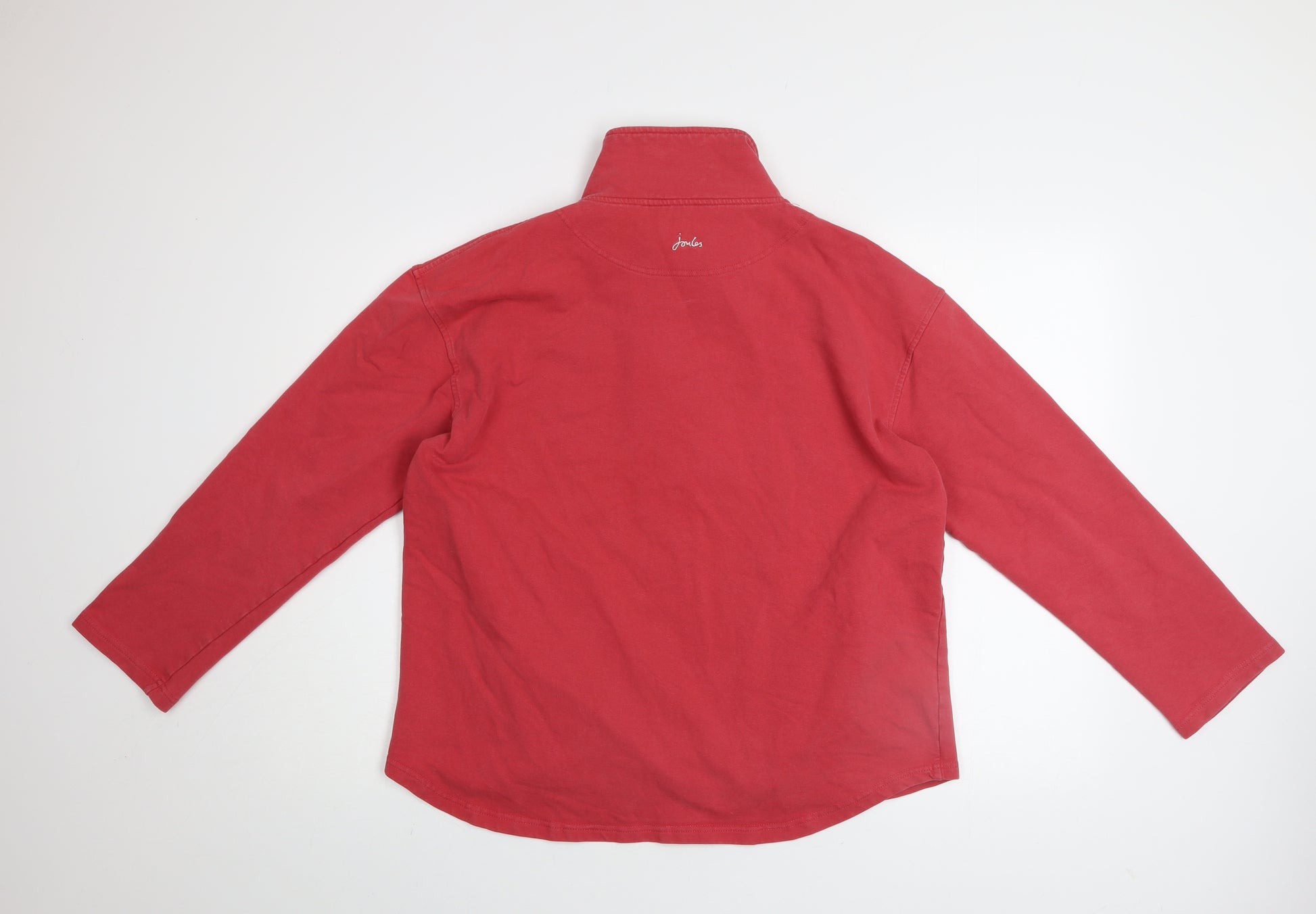 Stay cosy and stylish with this women’s Joules red 1/4 zip pullover sweatshirt, designed in a relaxed yet feminine fit. Crafted from a soft and breathable cotton fabric blend with a touch of elastane for flexibility, this sweatshirt delivers everyday comfort whether you’re exploring the outdoors or relaxing at home. The rich red tone offers a vibrant yet classic finish, complemented by the white fleece-lined collar that provides warmth and softness against the skin. A small embroidered Joules dog logo on the chest adds a touch of charm and brand distinction. Practical side pockets offer room for essentials or to keep hands warm during chilly days. The quarter zip closure allows for adjustable ventilation and layers easily over your favourite tees or under a lightweight jacket, making it an ideal layering piece across seasons. Designed in a UK size 14 (Large), this sweatshirt features a high neck, long sleeves and a gently curved hem for a flattering silhouette. Perfect for autumn, winter and early spring adventures or relaxed weekend wear, this Joules fleece-lined pullover captures the brand’s signature British countryside style in a functional, easy-care design. Pair it with jeans, leggings or joggers for a versatile wardrobe essential that combines comfort, practicality and understated style. Overall condition is excellent with minimal signs of gentle wear, maintaining its vibrant colour and softness — a stylish and dependable addition to your casual collection.
