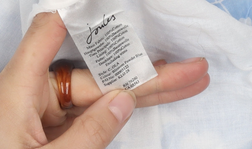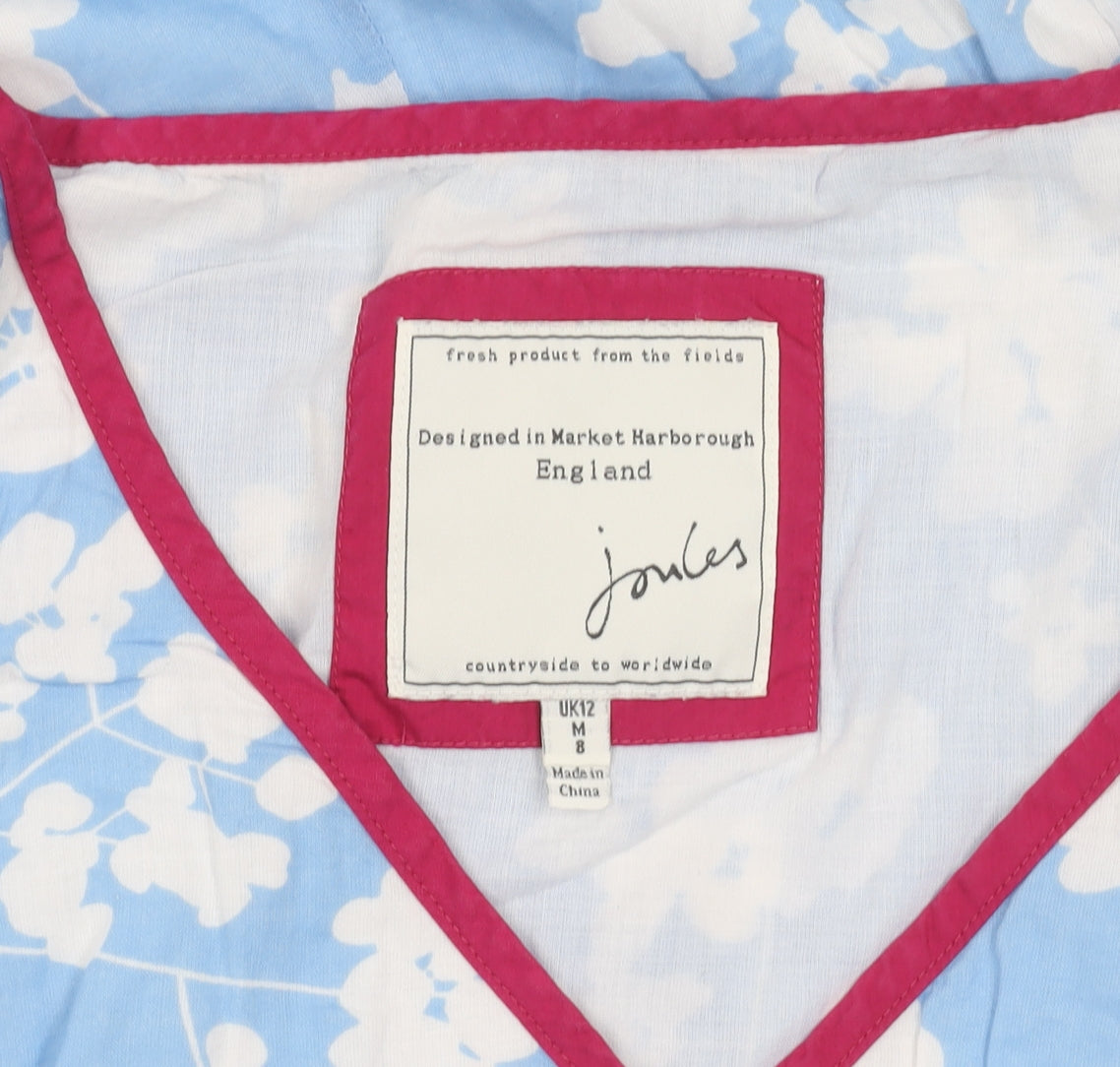 Introducing the Joules Women's Blue Floral A-Line Dress, an exquisite choice for adding a touch of elegance to your wardrobe this spring and summer. Crafted by the well-loved British brand Joules, this dress features a delightful sky blue hue adorned with a white floral pattern, making it an ideal pick for casual days and garden parties alike. Designed with a flattering A-line silhouette, this midi dress gracefully enhances your figure, providing comfort and style effortlessly. Made from 100% cotton and featuring a woven fabric type, it boasts breathability in warmer weather while offering a soft, high-quality feel. The dress is designed with a sophisticated V-neckline, adding a hint of allure, while its sleeveless design ensures you stay cool and chic. With a size UK 12, it fits regular sizing and has a reliable zip closure for ease of wear. The fully lined construction ensures a smooth and polished drape, accentuating its beautiful cut and pattern. Machine washable for convenient garment care, this dress allows you to enjoy its vibrant floral motif without fuss. Whether you pair it with sandals for a daytime event or dress it up with heels for an evening out, the Joules Women's Blue Floral A-Line Dress is sure to make an impression. Embrace its timeless design and let this versatile piece become a staple in your fashion collection. With minor creasing visible, it remains in excellent condition, ready to enhance your ensemble with grace and charm.