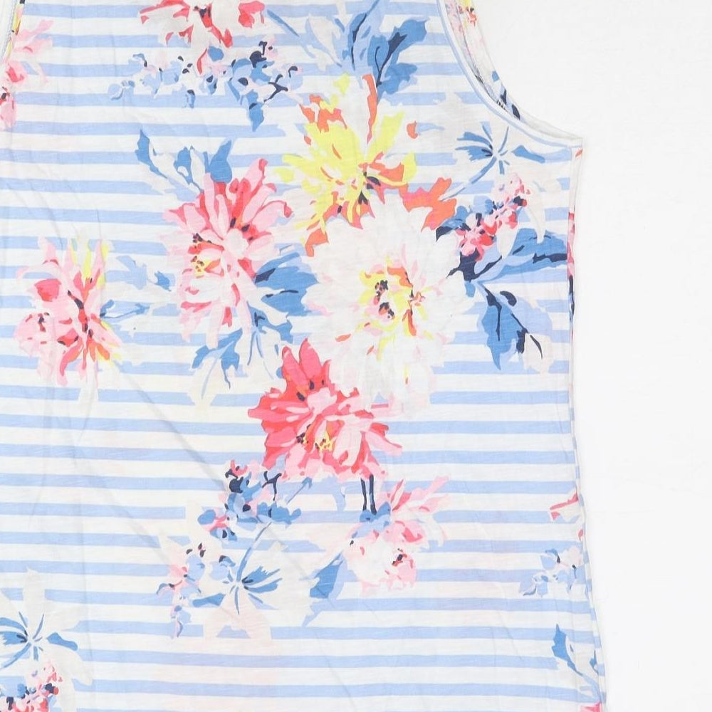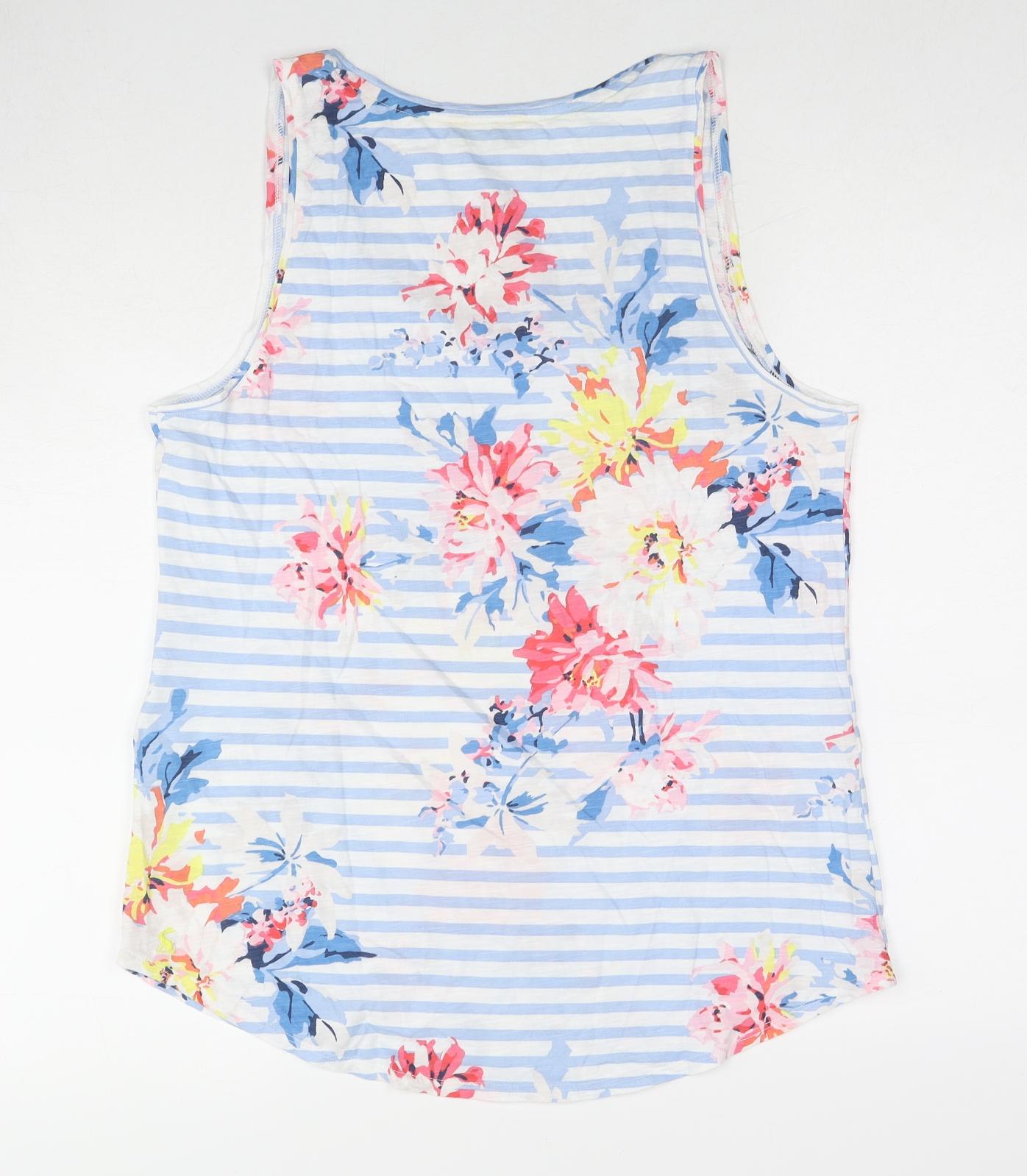 Womens Blue Geometric Cotton Basic Tank Size 14 Round Neck