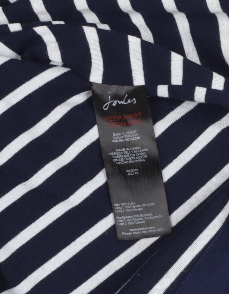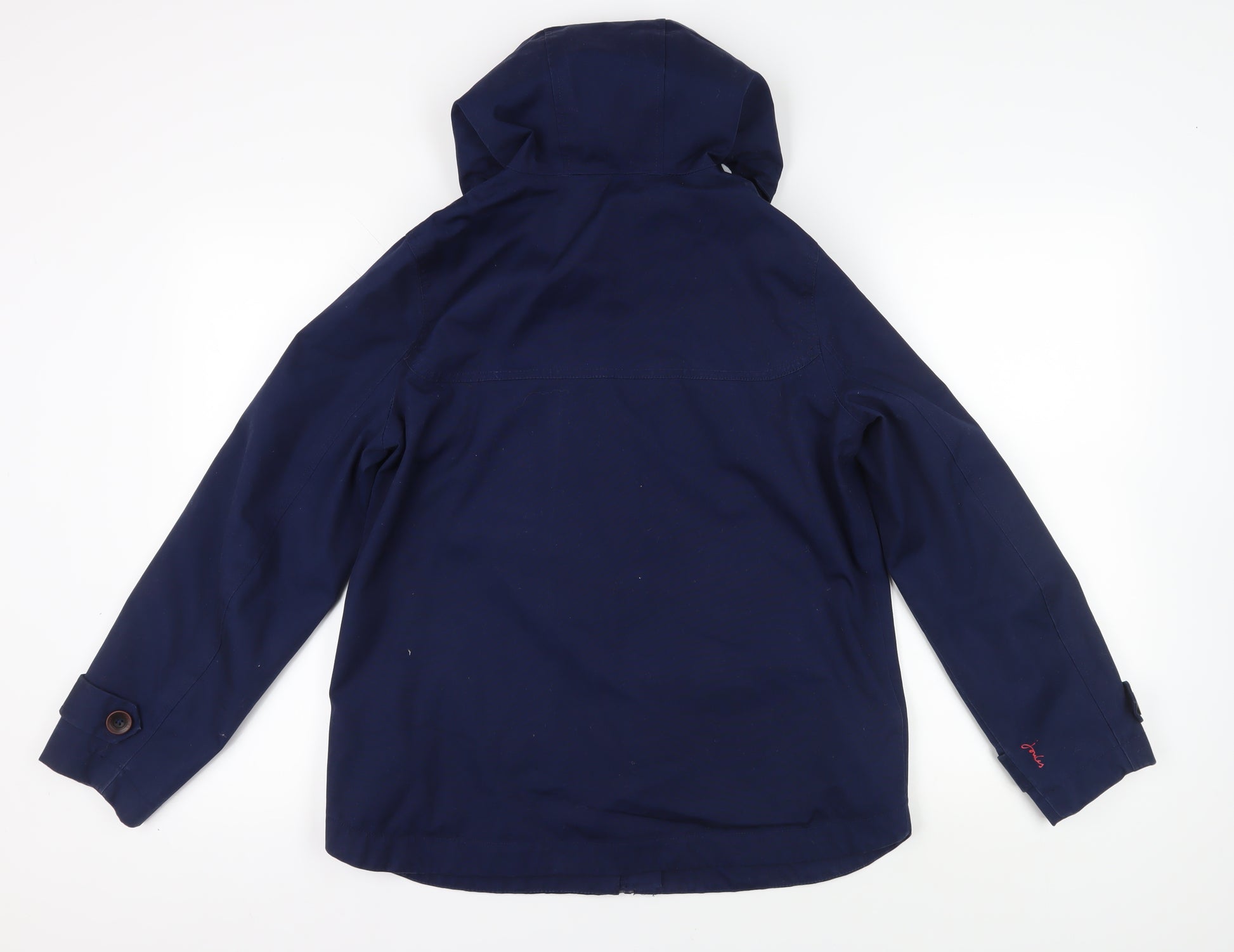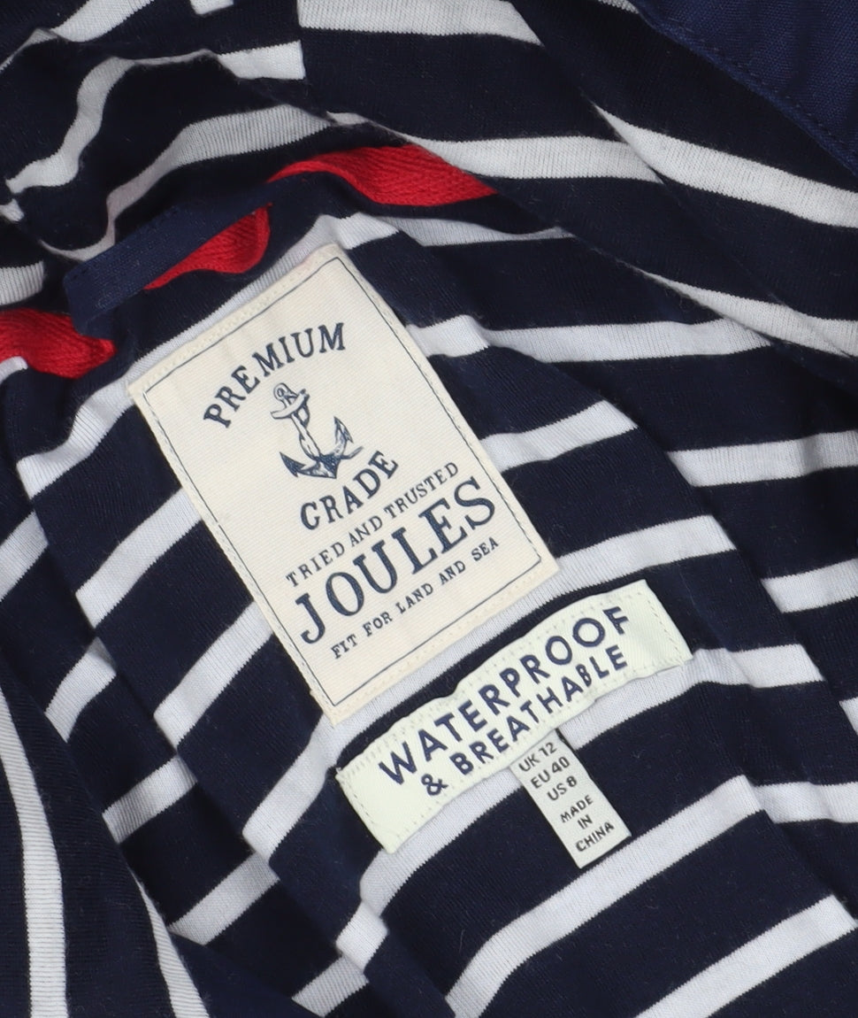 Discover the perfect blend of style and functionality with this navy blue women's raincoat from Joules. Designed for the dynamic customer who appreciates both fashion and comfort, this jacket promises to keep you dry and stylish no matter the weather. With its breathable and waterproof features, this coat is your ideal companion for those unpredictable autumn and spring days. It offers a regular fit that enhances your silhouette, while its hooded design ensures you stay protected from sudden showers. Crafted from premium cotton fabric, the jacket is lined with a soft blend of polyester and cotton for extra warmth and comfort. This mid-length raincoat features a charming nautical theme, enhanced by a button accent closure that elevates its overall aesthetic. The long sleeves and button closure keep cold drafts at bay, making it perfect for casual outings. Whether you're heading out for a countryside stroll or running errands in the city, this Joules raincoat is versatile enough to adapt to any situation. Easy to care for, this machine washable coat retains its fresh, clean look with minimal effort. In excellent condition, this jacket shows very light wear, making it a great sustainable purchase. Make this practical and stylish raincoat your wardrobe staple for all your seasonal adventures.