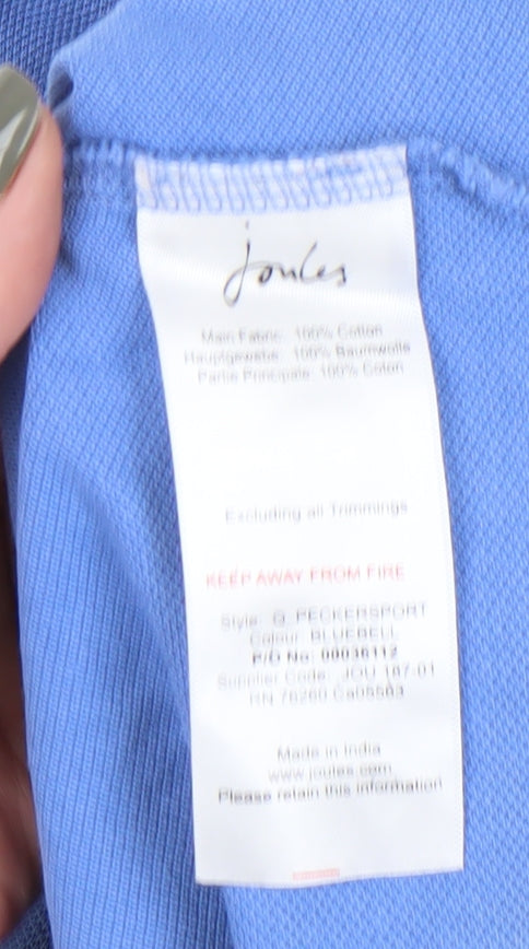 Discover casual elegance with this Joules Women's Blue Polo Shirt. Crafted from 100% cotton, this classic polo offers breathable comfort and style for everyday wear. The short sleeves and collared neckline add a touch of sophistication, while the button accents enhance its timeless appeal. Perfect for women who appreciate classic fashion, this polo is versatile enough to pair with jeans or skirts for a casual look. Its solid blue color embodies a sense of calm and complements any wardrobe. Designed for all-day comfort, this top is easy to care for with machine washability. With a classic fit, this shirt suits all seasons and is an ideal choice for various casual occasions. Despite being pre-loved, it retains excellent condition with slight signs of wear, making it a great addition to your collection. Embrace effortless style and comfort with this Joules polo shirt, and enjoy a piece that blends style and practicality seamlessly.