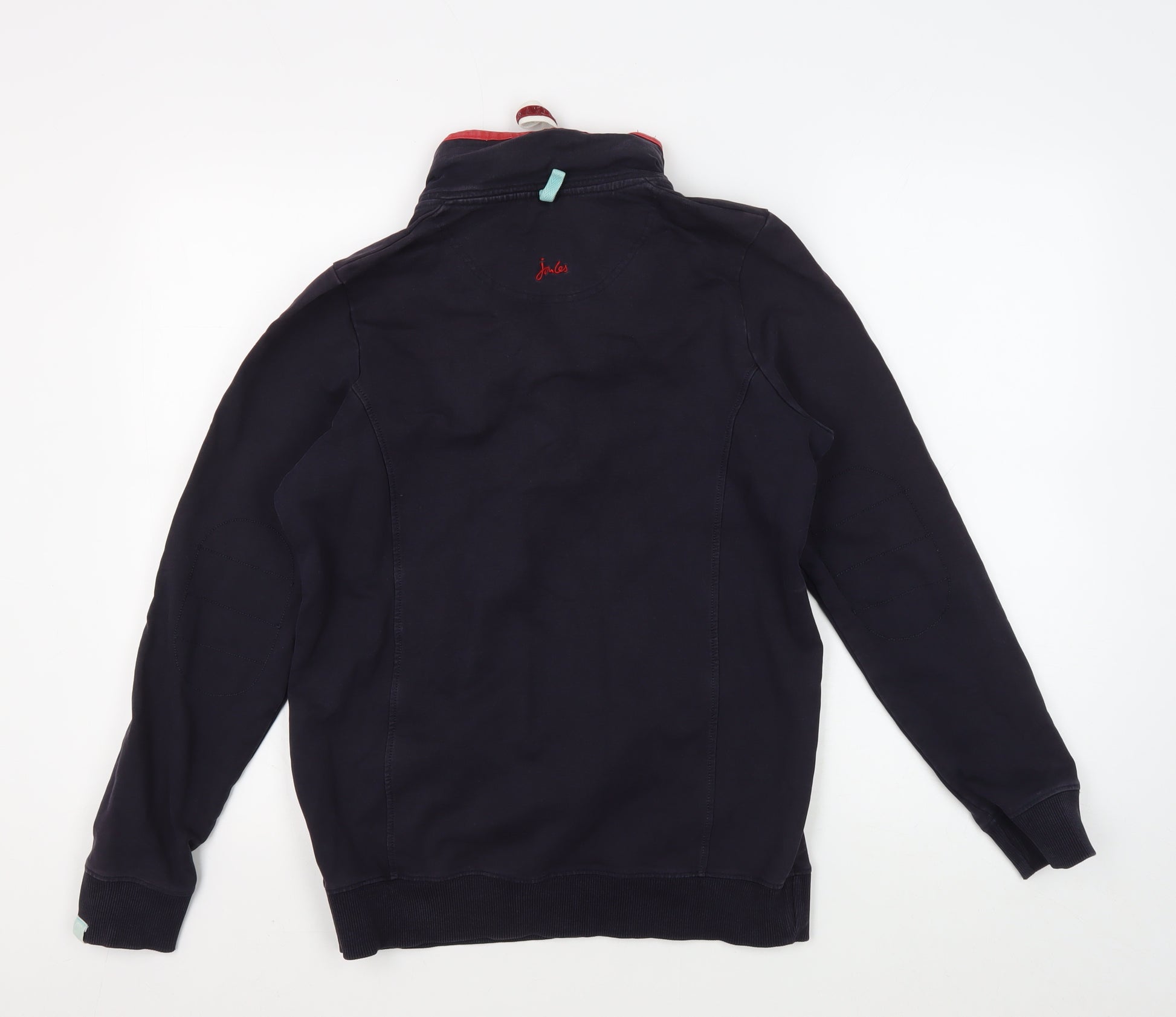 Discover effortless style with this Joules women's sweatshirt, perfect for adding a touch of casual sophistication to your wardrobe. Crafted in a rich blue hue, this pullover sweatshirt is designed with a high neck and drawstring closure, making it ideal for autumnal and winter months. The addition of a 1/4 zip provides versatility and ease of wear, while the long sleeves offer comfort and warmth during cooler temperatures.Made from a high-quality cotton and elastane blend, this knit fabric maintains its shape and offers a natural stretch for a comfortable fit. Whether you're running errands, meeting friends, or simply enjoying a relaxed weekend at home, this sweatshirt is your go-to choice for casual occasions. Its machine washable material ensures that it’s easy to care for, allowing you to enjoy it season after season.Embodying the classic style that Joules is known for, this regular fit sweatshirt is perfect for every woman seeking a blend of practicality and style. While it's designed for everyday casual wear, the high neck and rich texture elevate your look, offering a chic alternative to ordinary sweatshirts. With slight wear on the hem, this piece remains in good condition and is ready to be the next staple in your wardrobe.Available in size UK 10, this piece can effortlessly pair with your favourite jeans or a cosy pair of leggings, ensuring a stylish ensemble that can transition from home comfort to casual outings.