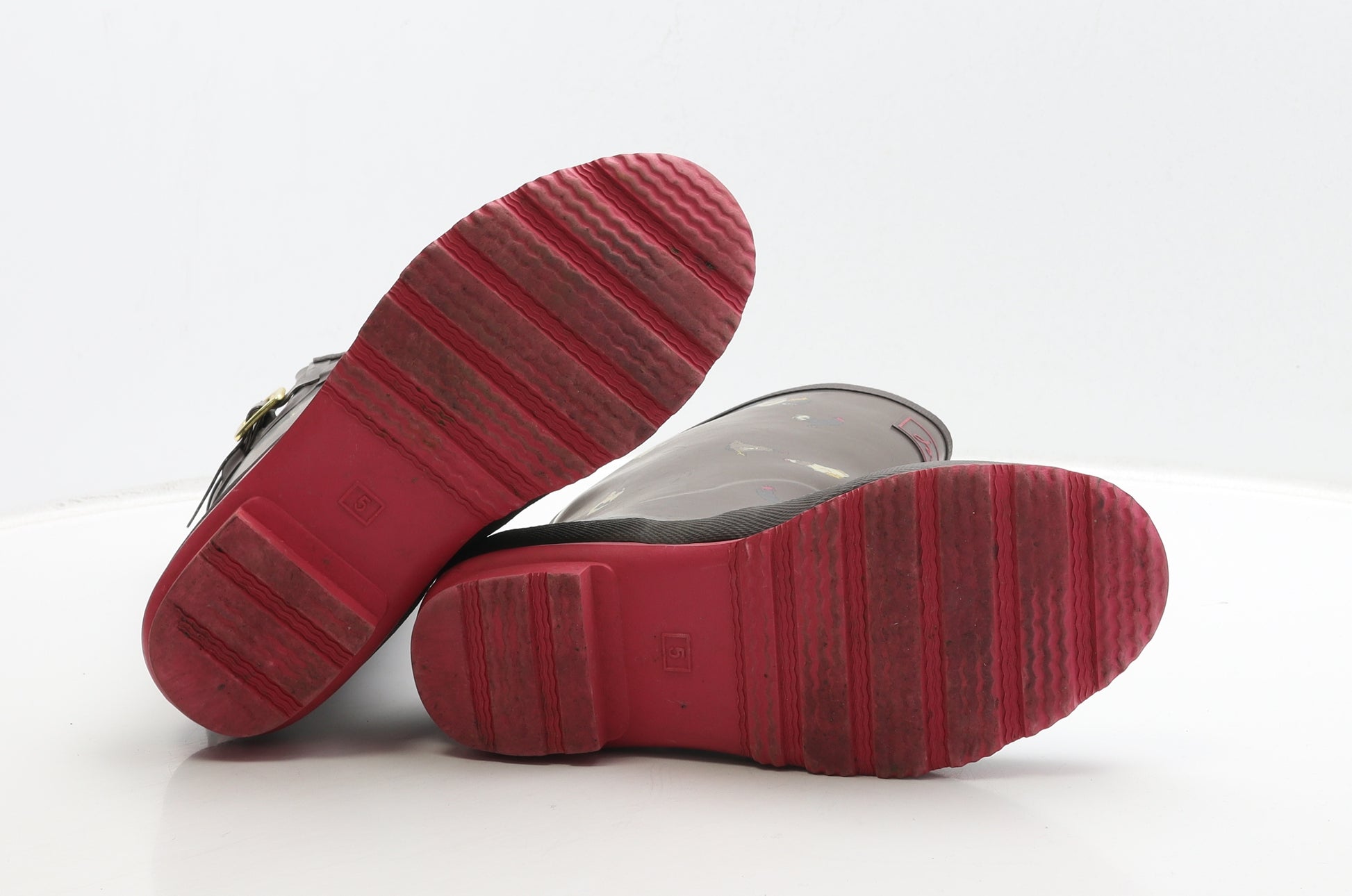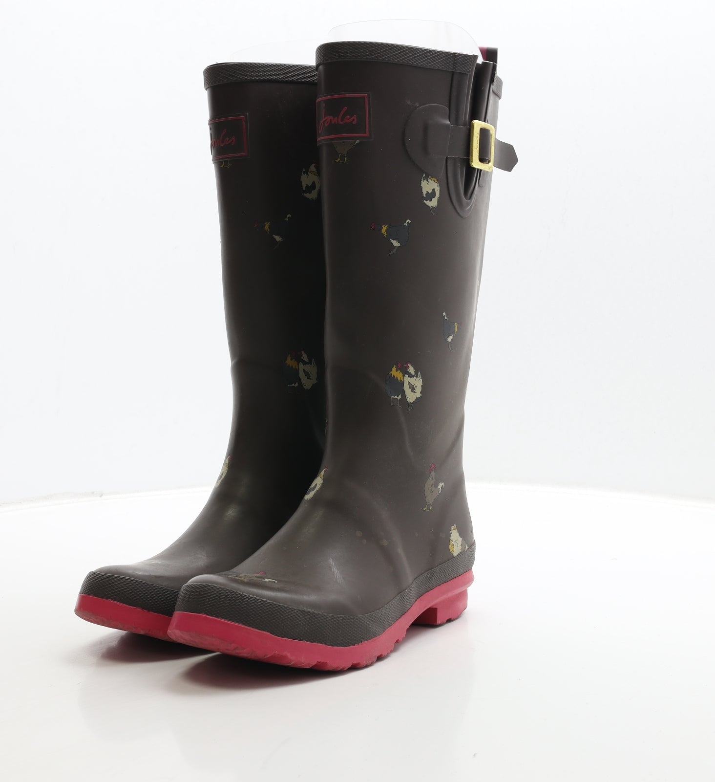 Womens Brown Rubber Wellies Boot UK 5 - Chicken Print