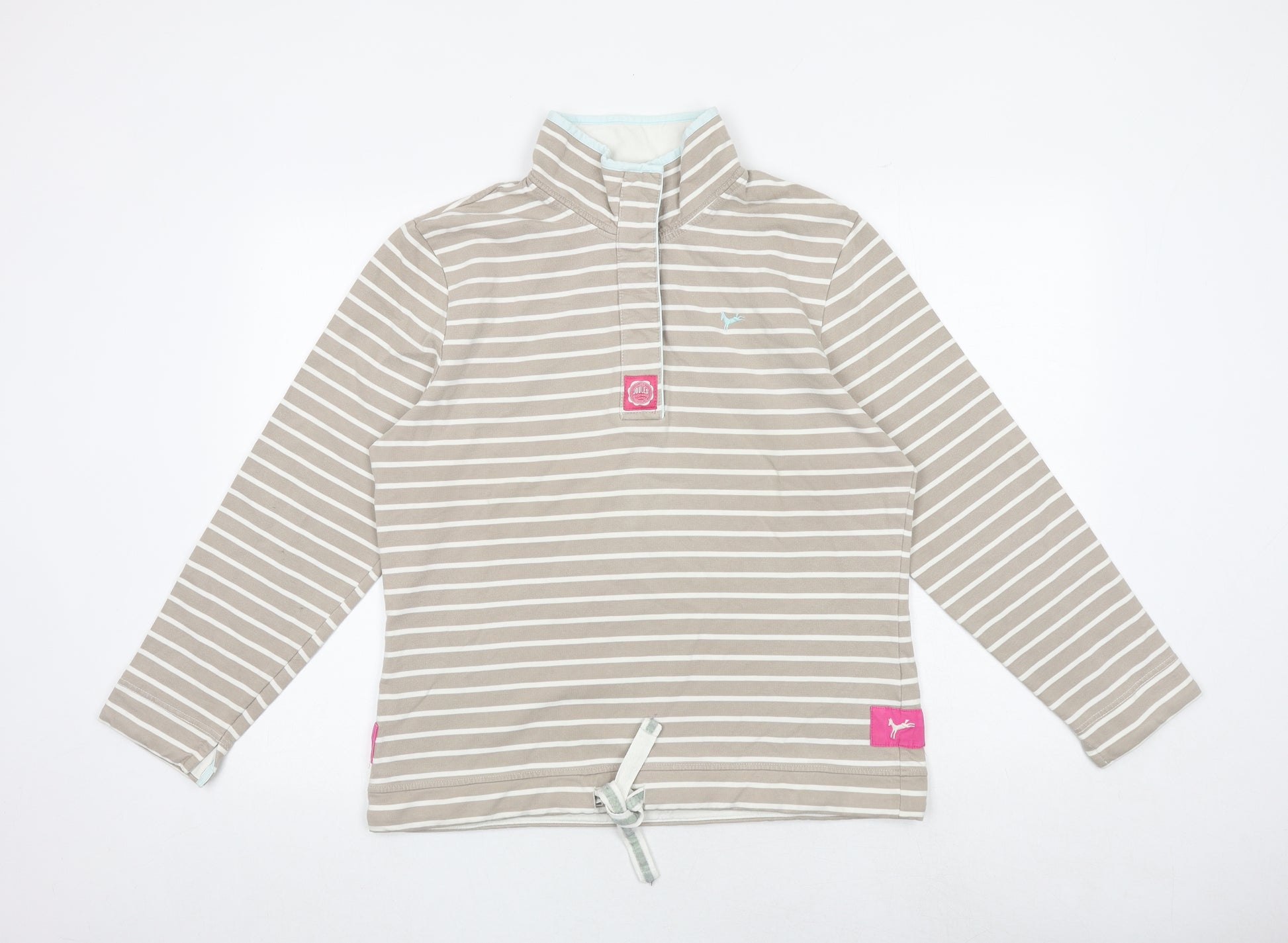 Womens Brown Striped 100% Cotton Pullover Sweatshirt Size 16 Button