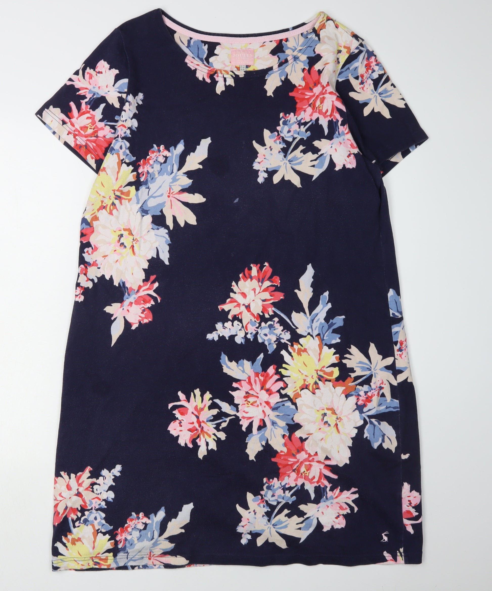 Elevate your wardrobe with this delightful Joules women’s shift dress. Designed for casual occasions, this knee-length dress offers a playful floral pattern on a rich navy backdrop, making it a versatile piece for spring and summer. Crafted with soft jersey fabric and made entirely of cotton, it ensures comfort with every wear. The dress features a classic round neckline and short sleeves, providing a relaxed fit that easily complements any body shape. Perfect for day trips or casual outings, this dress seamlessly combines style and ease. The pullover design makes it convenient to wear, while the machine washable feature ensures easy maintenance. Whether worn with sandals or trainers, this dress is a charming addition to any casual ensemble.