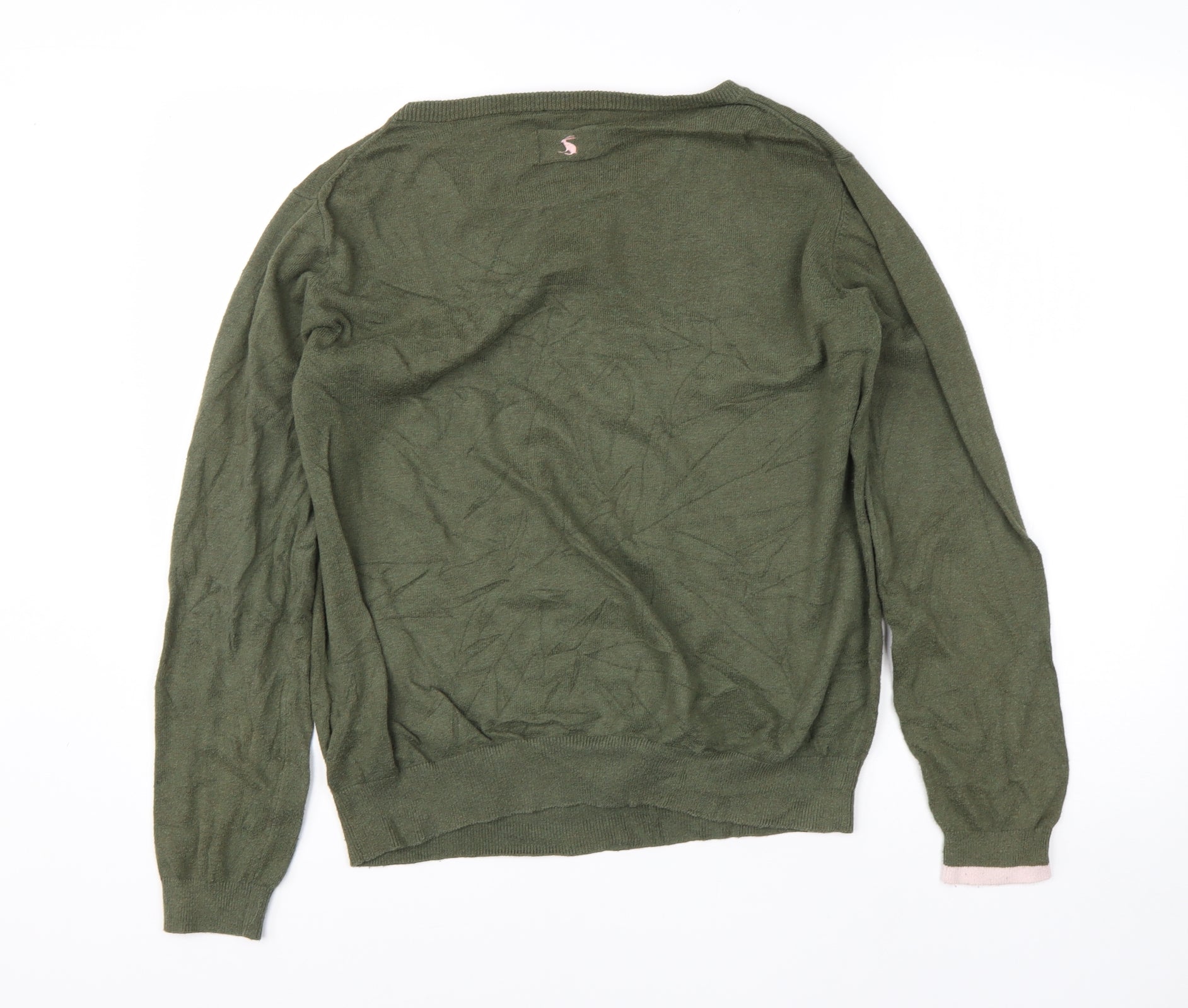 Womens Green Round Neck Cotton Pullover Jumper Size 12 - rabbit