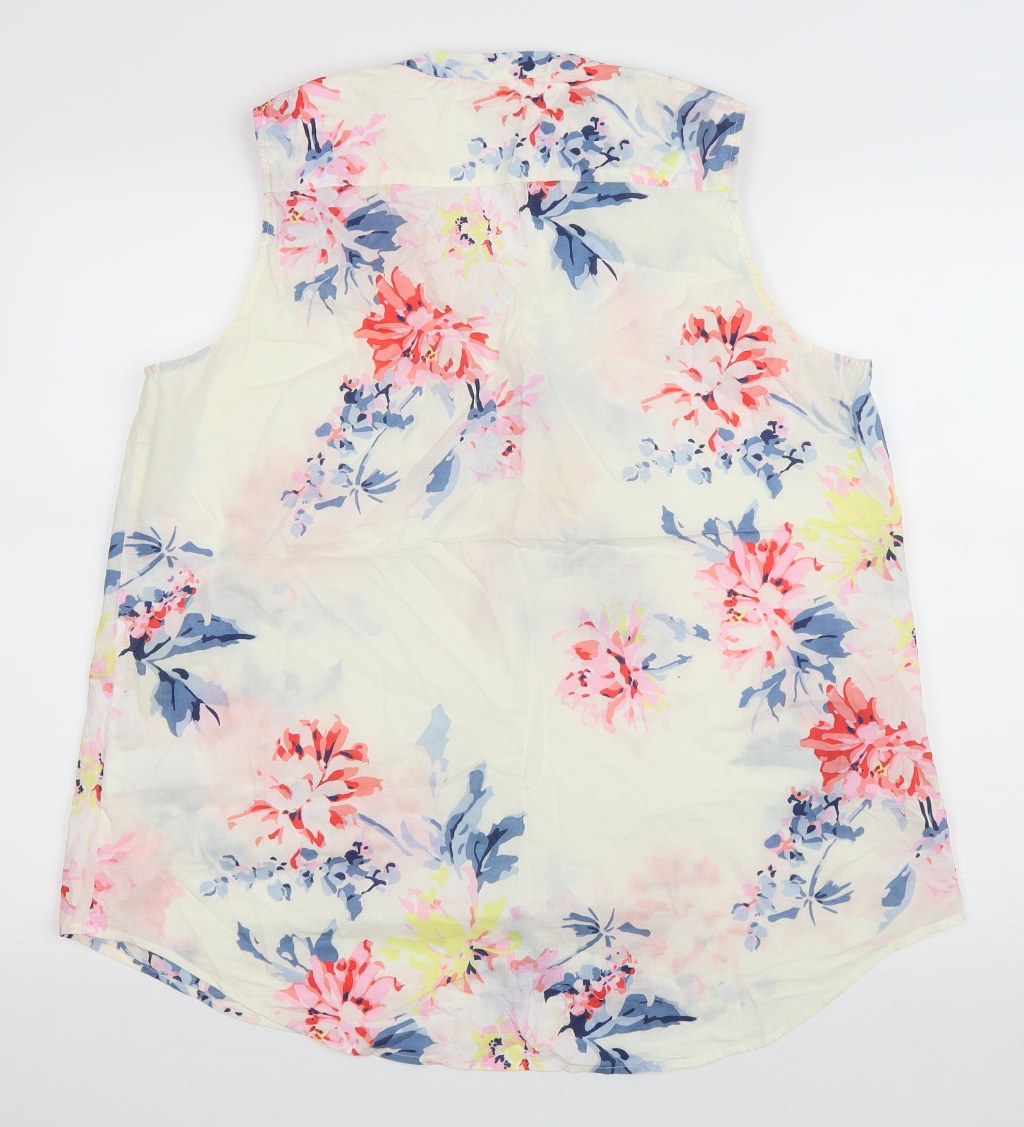 Womens Ivory Floral Cotton Basic Blouse Size 16 V-Neck