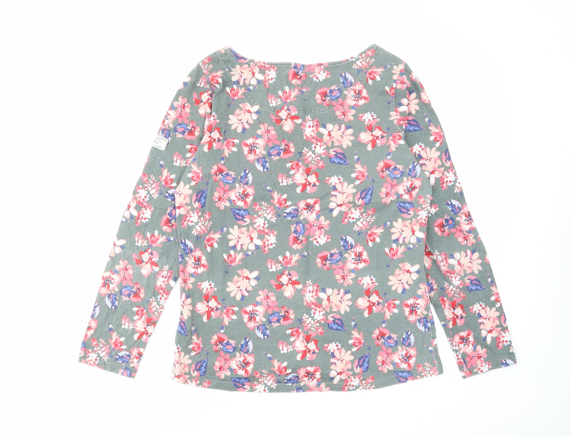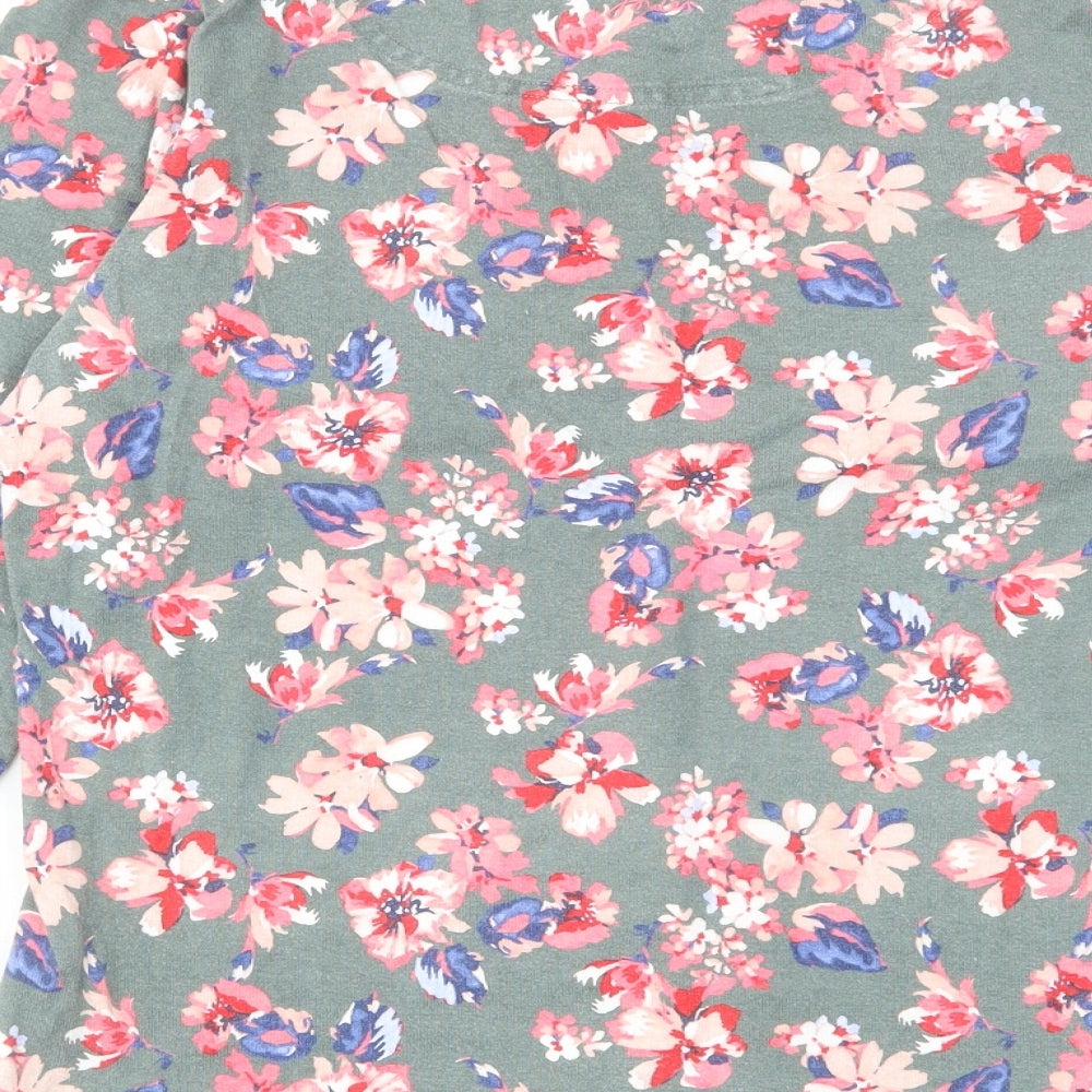 Womens Multicoloured Floral Cotton Basic T-Shirt Size 12 Round Neck