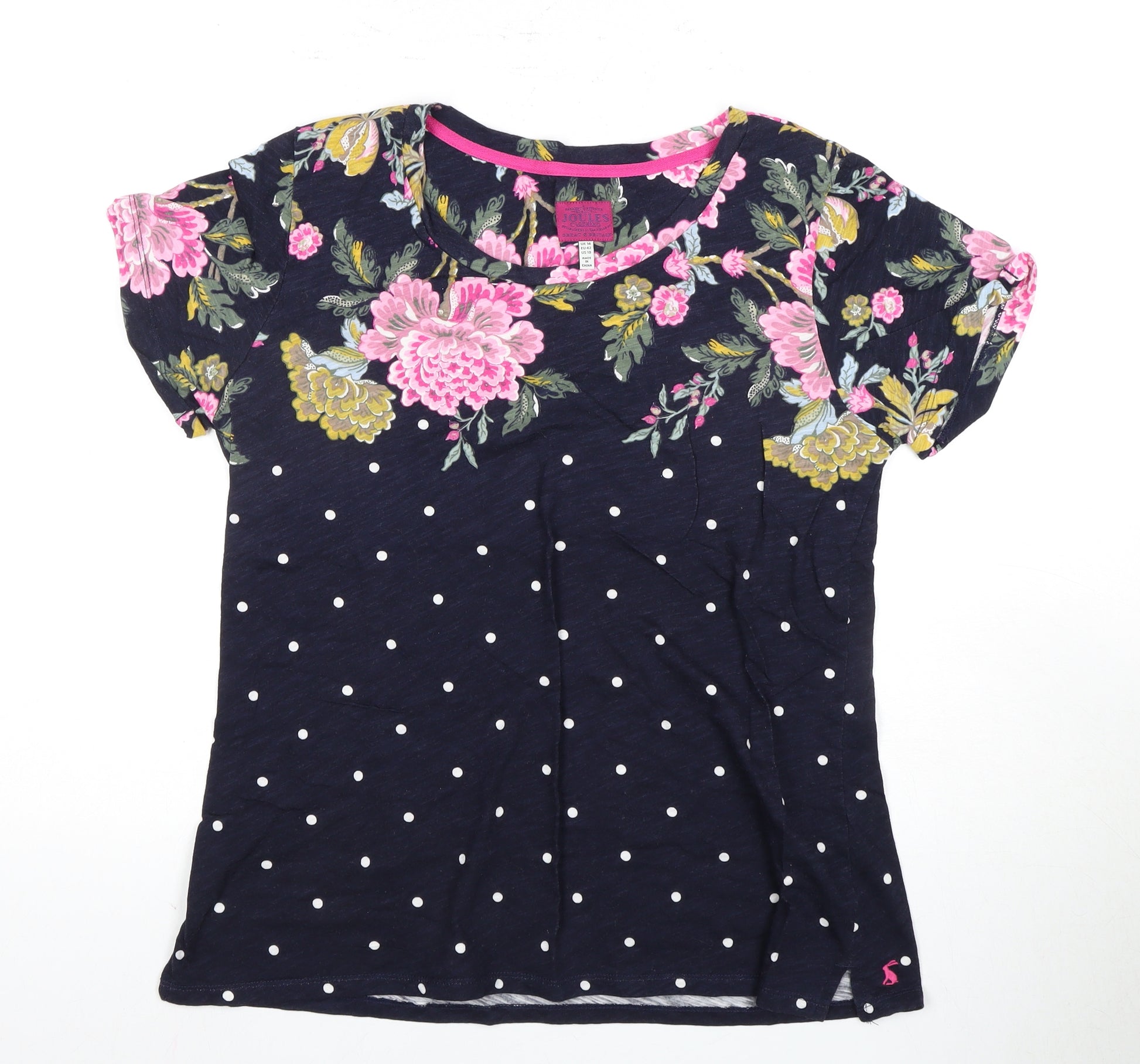 Elevate your casual wardrobe with this delightful women's T-shirt from Joules, a brand renowned for impeccable style and quality. Designed with a vibrant multicoloured floral and polka dot pattern, this T-shirt offers a refreshing and lively look ideal for any occasion. Comfort and style meet seamlessly with its soft jersey fabric, made entirely of 100% cotton. The short sleeves and crew neck add a classic touch, making this T-shirt an excellent choice for spring and summer outings. This regular fit tee, available in a UK size 14, is a versatile addition to any wardrobe and pairs effortlessly with jeans, shorts, or skirts. Whether you're heading out for a casual day with friends or running errands, this T-shirt delivers both style and comfort. Experience the perfect blend of quality and fashion with Joules, and embrace the easy-care nature of this machine washable garment. Perfect for any casual occasion, its lightweight feel ensures you stay relaxed and chic throughout the day.