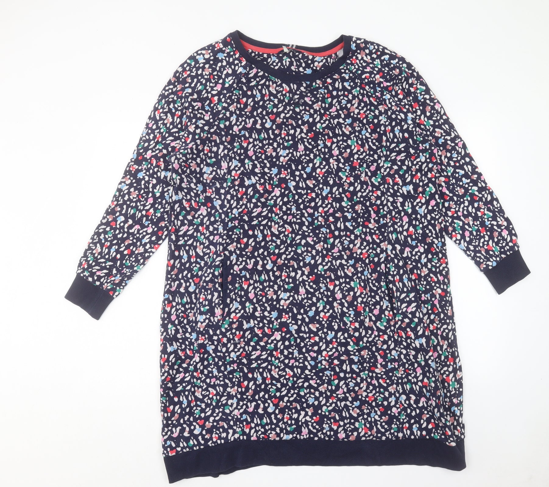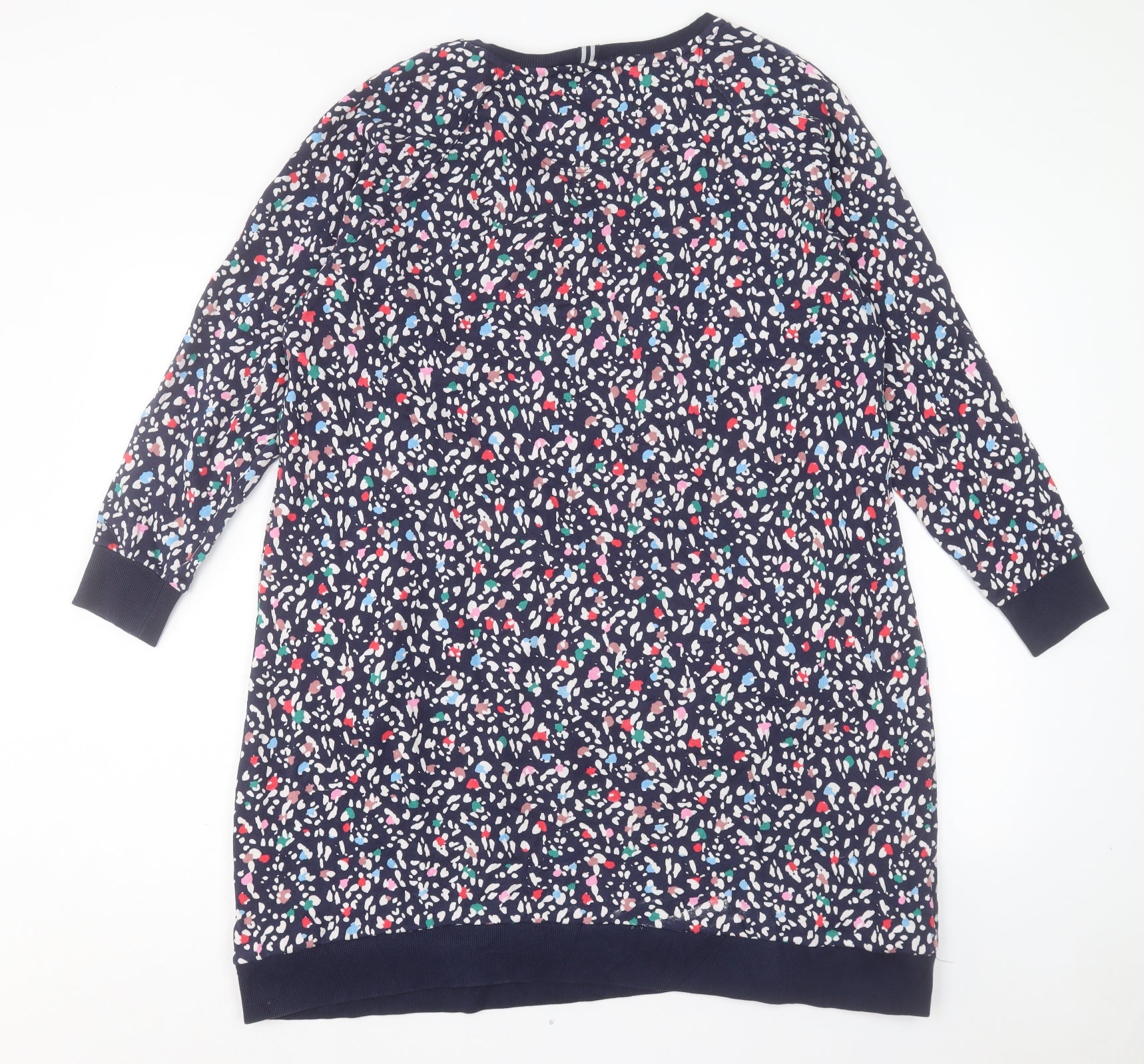 Womens Multicoloured Geometric Cotton Jumper Dress Size 18 Crew Neck Pullover