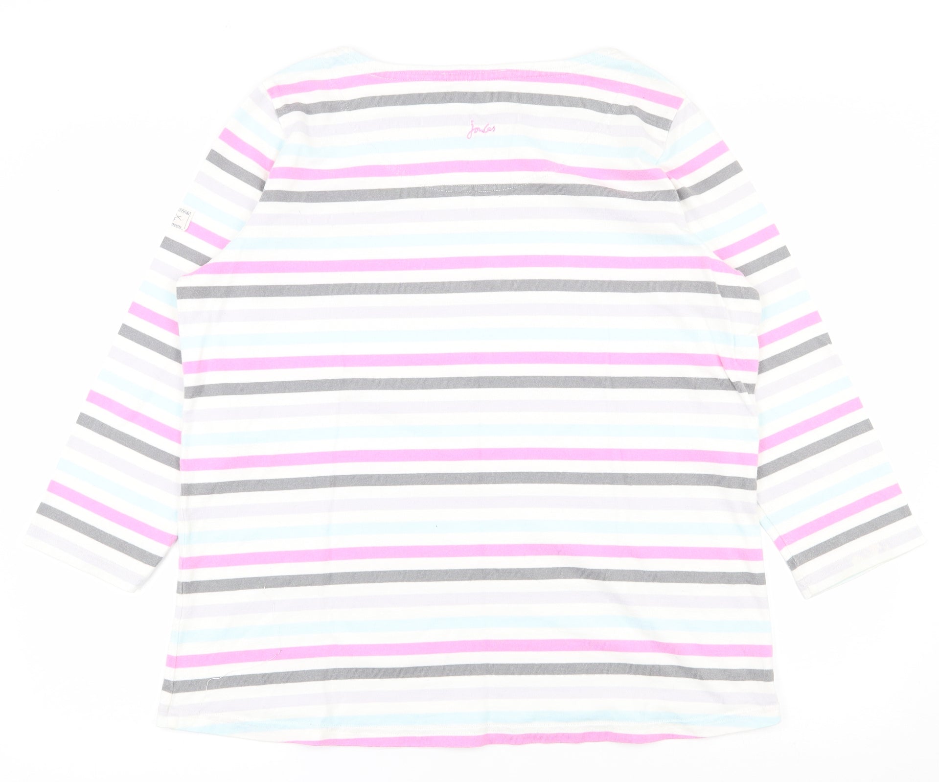 Womens Multicoloured Striped 100% Cotton Basic T-Shirt Size 18 Boat Neck