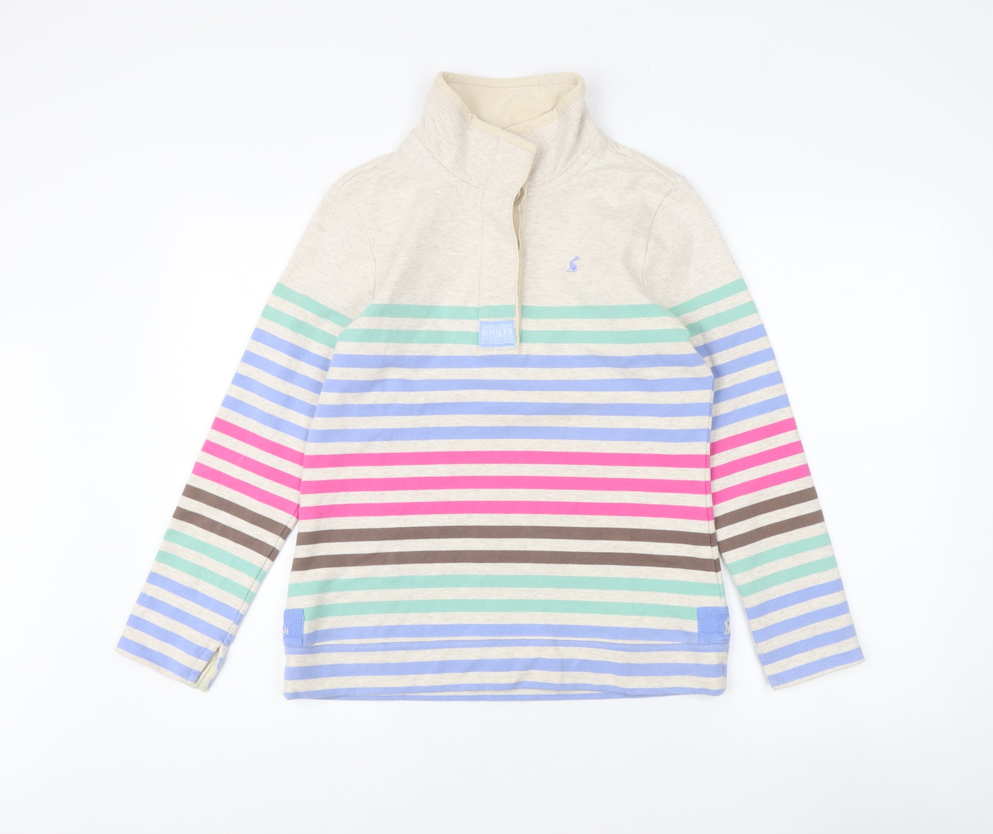 Add a pop of colour to your wardrobe with this fashionable women's sweatshirt by Joules. Made in a comfortable jersey fabric, this multicoloured striped piece is perfect for casual outings. With a unique mock neck and a practical 1/4 zip closure, this lightweight sweatshirt is designed for the modern woman. The long sleeves and regular fit ensure comfort during cooler spring and autumn days. Featuring a stylish logo accent, this versatile piece is machine washable, offering easy care. Ideal for those seeking a blend of style and practicality, this is a must-have for your casual collection.