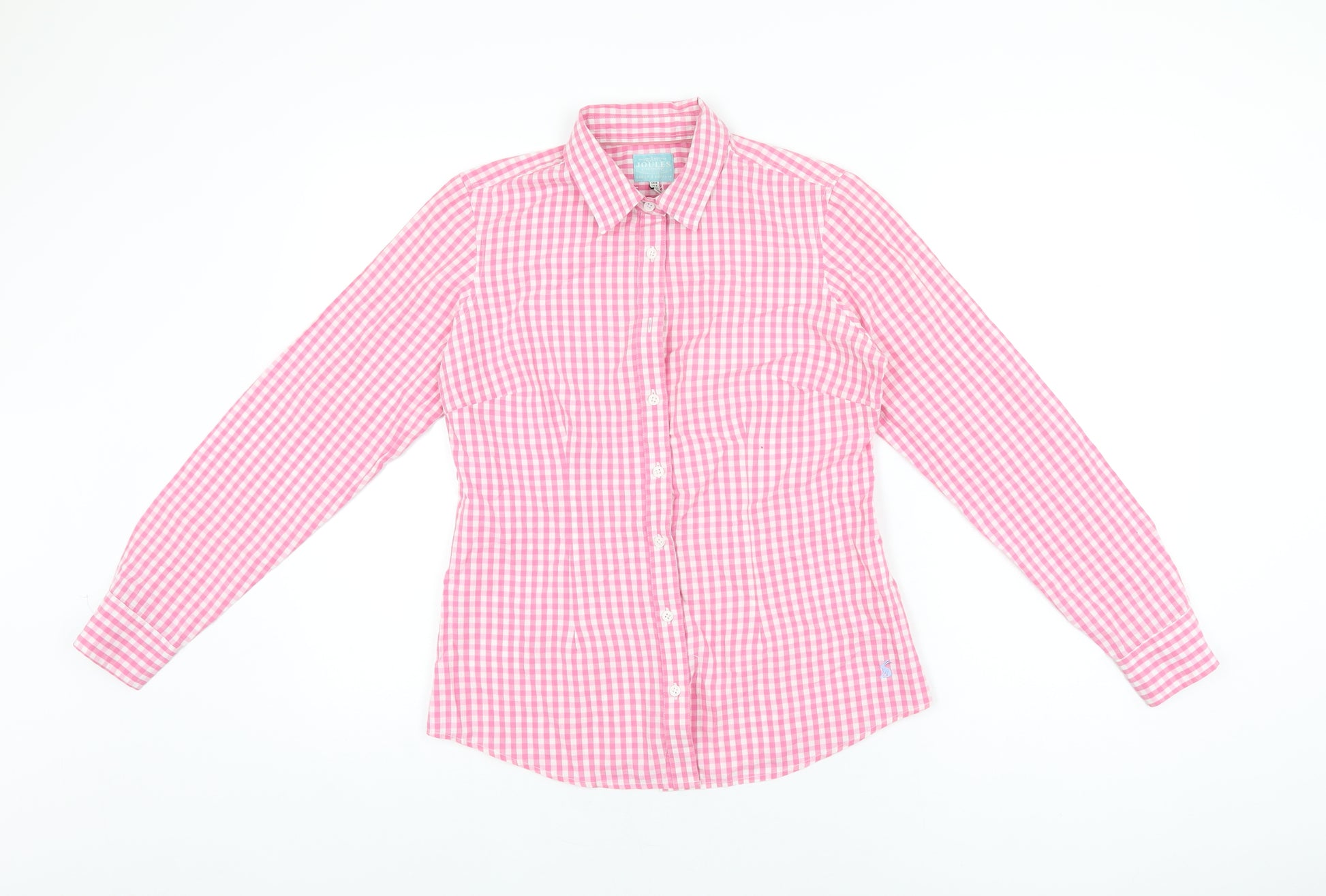 Womens Pink Geometric Cotton Basic Button-Up Size 8 Collared - Gingham