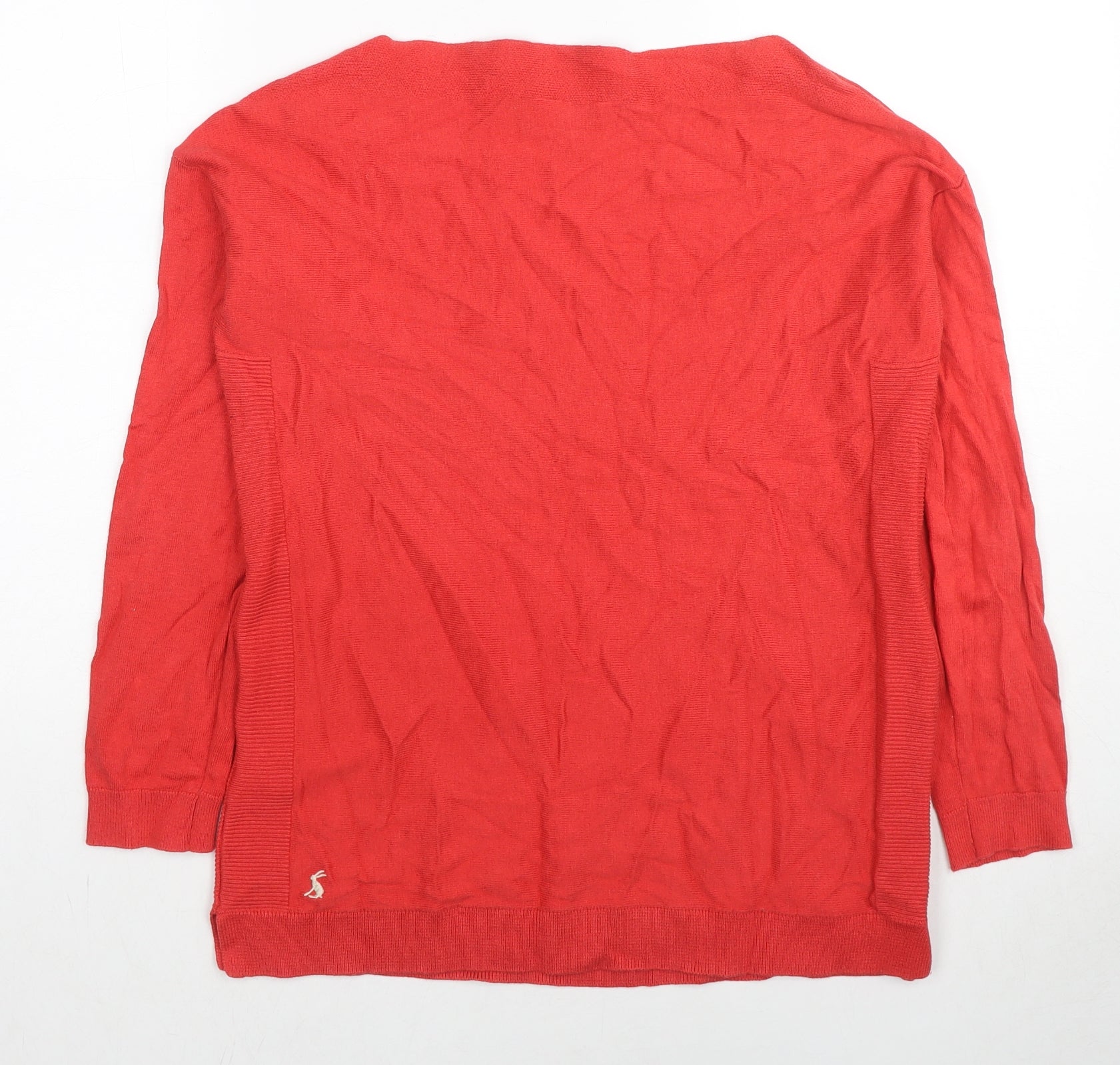 Womens Red Boat Neck Cotton Pullover Jumper Size 10