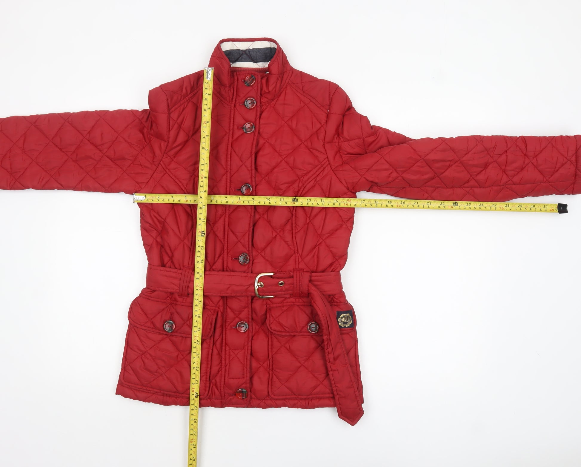 Women's Red Quilted Belted Mid-Length Jacket Size 8