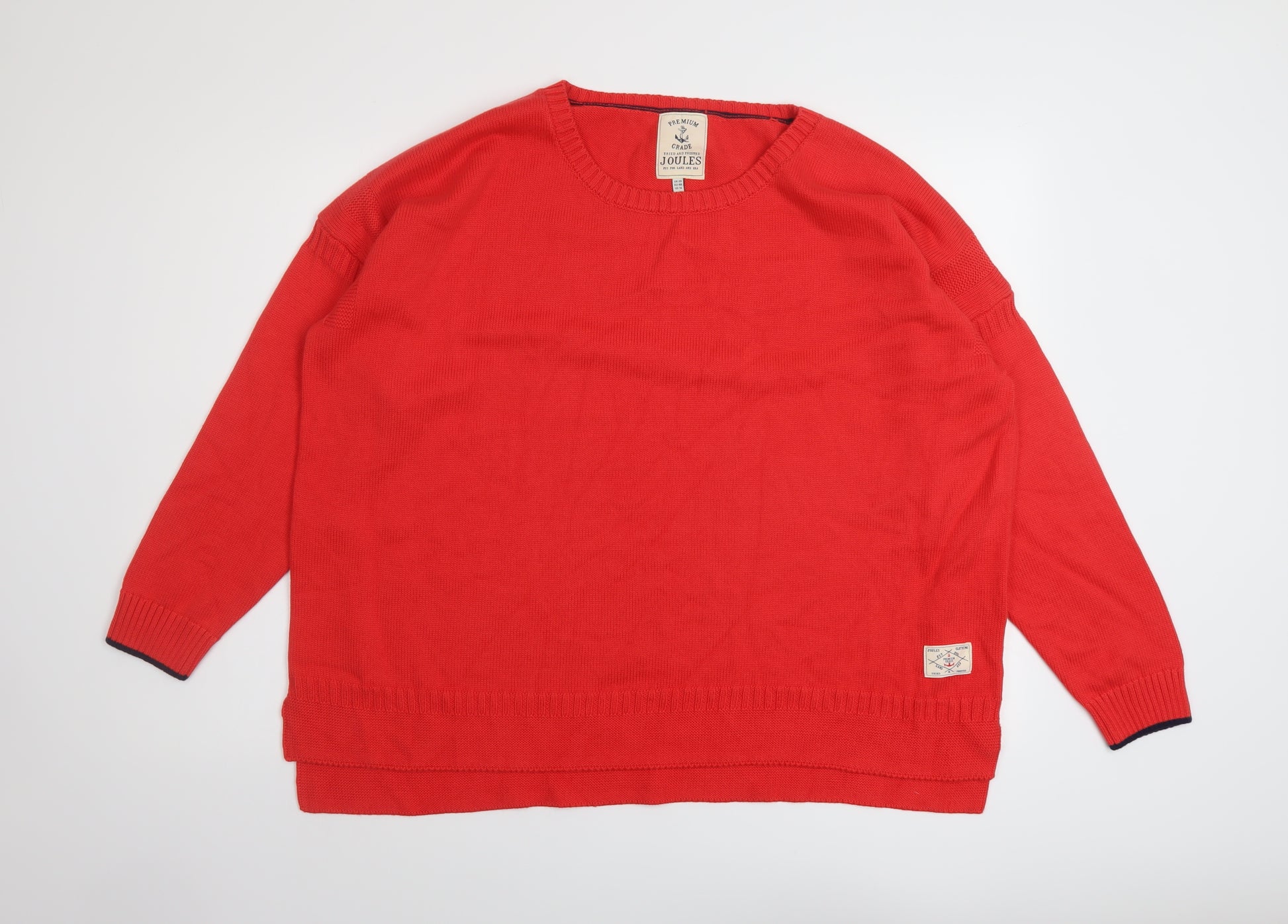 Womens Red Round Neck Cotton Pullover Jumper Size 20