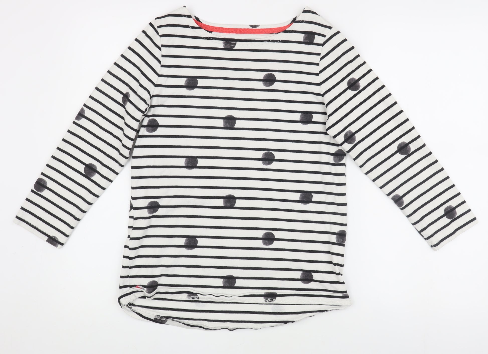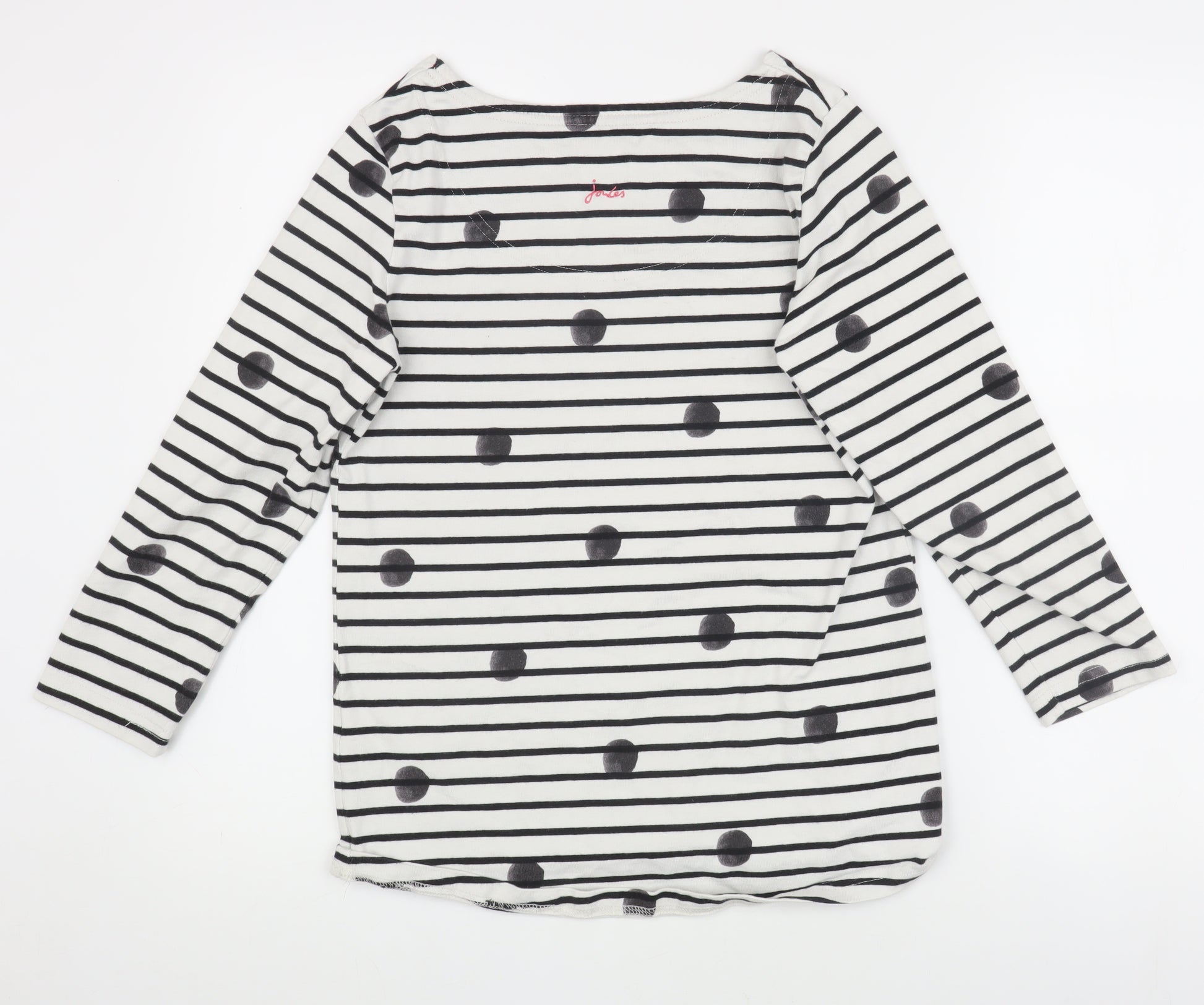 This classic Joules women's T-shirt, perfect for those casual outings, combines comfort and style effortlessly. Made from 100% cotton, it offers a soft and breathable feel. Designed in a regular fit, it features a timeless striped pattern in a chic white colour with accents of black, making it a versatile addition to your wardrobe. The boat neck and long sleeves add a touch of elegance, suitable for any casual occasion. With its machine-washable convenience, this top promises easy care and durability. Ideal for all seasons, this piece ensures you look fashionably comfortable, no matter the weather. Grab this Joules T-shirt today for a blend of quality and trendiness.