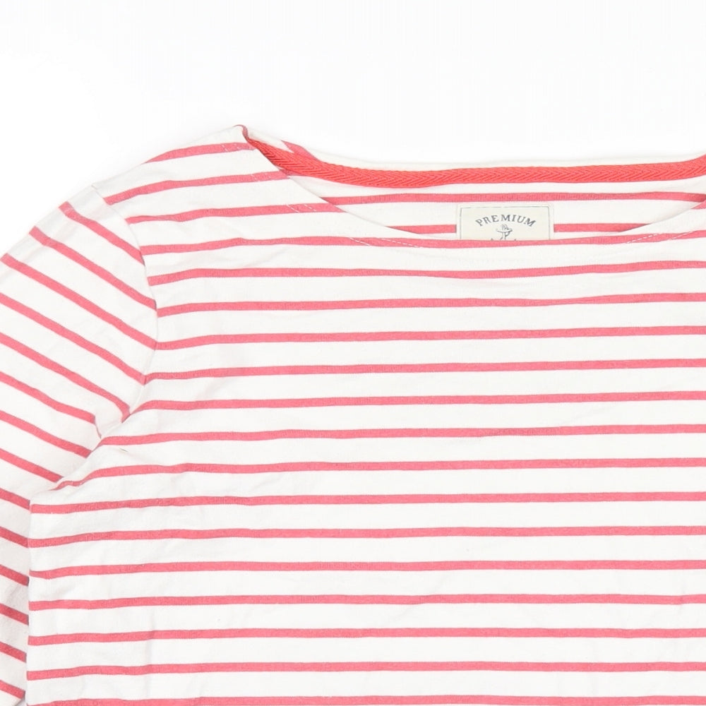 Next Women White Striped Short Sleeve Knit T-Shirt Size 14