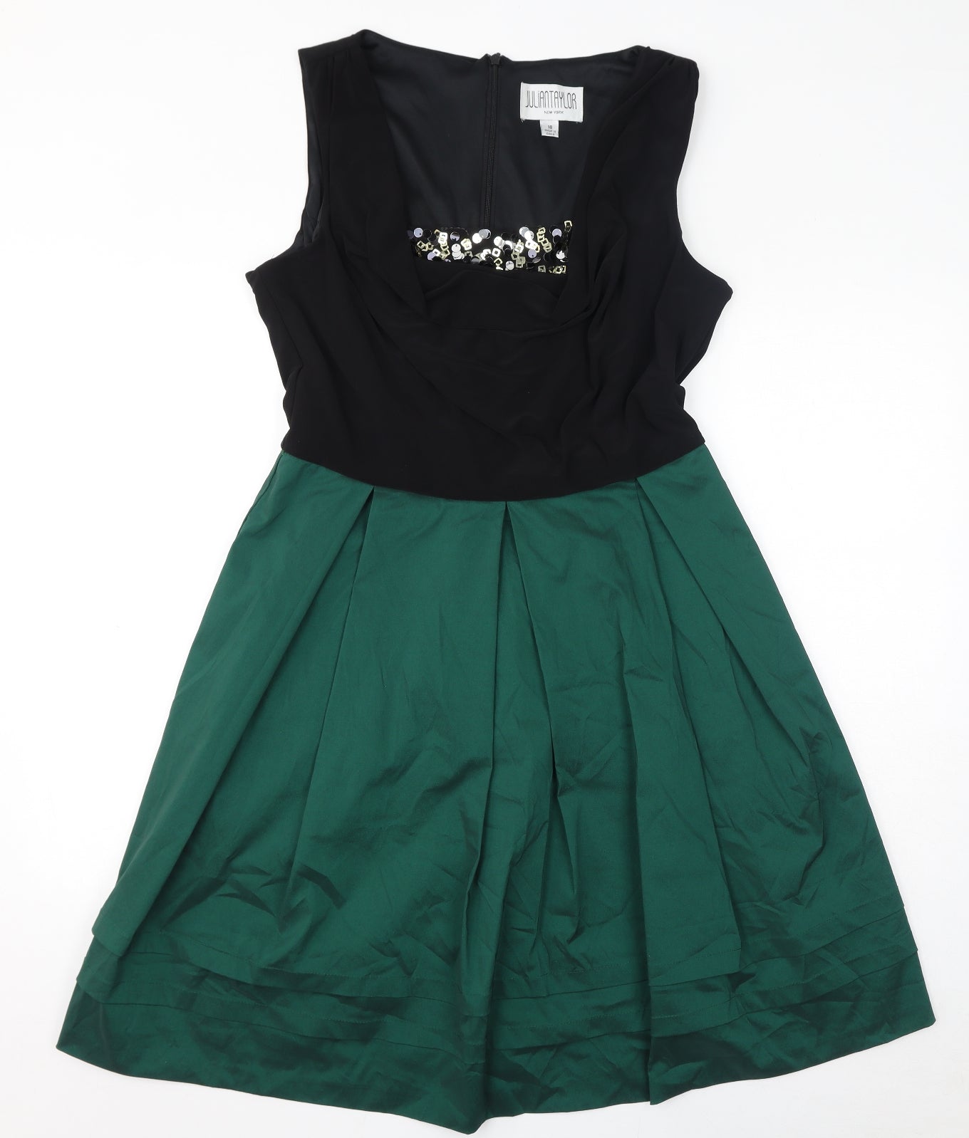 Womens Green Polyester A-Line Size 18 Cowl Neck Zip - Sequins
