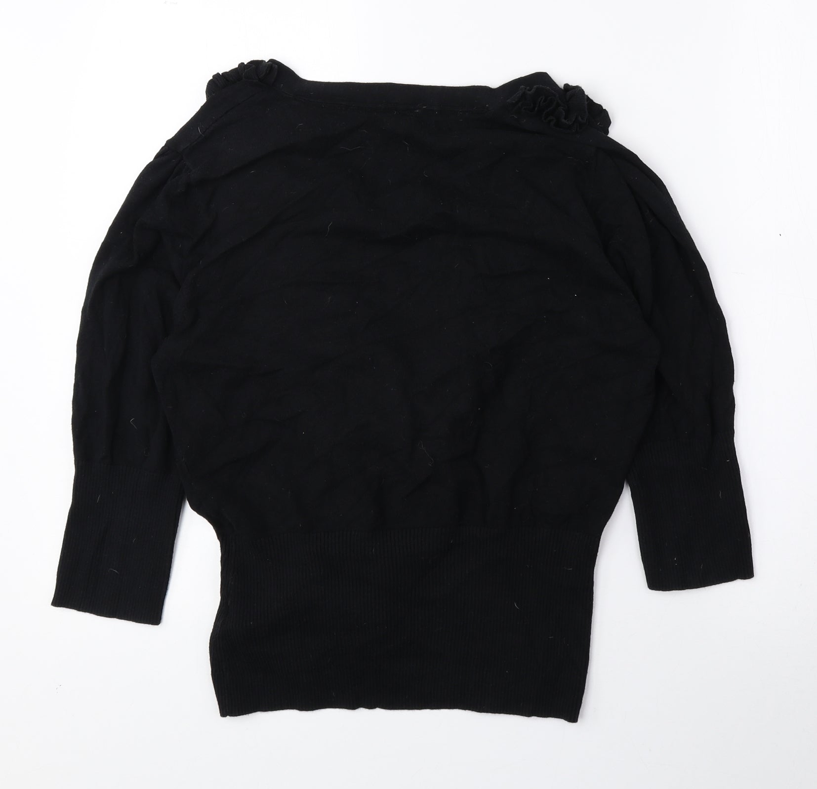 Womens Black V-Neck Cotton Cardigan Jumper Size 16