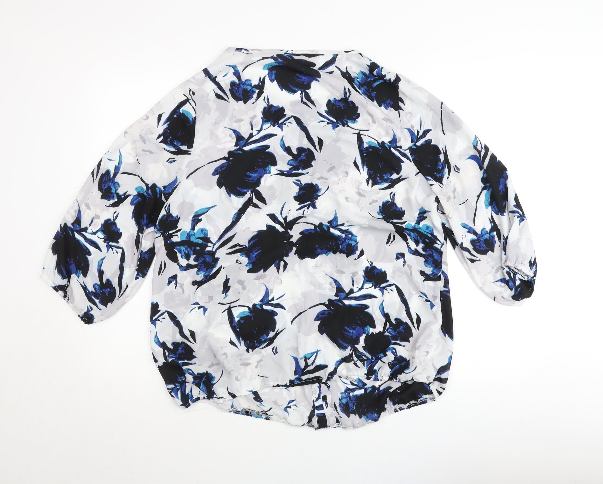Women Blue Floral Chiffon Tunic Blouse Size 14