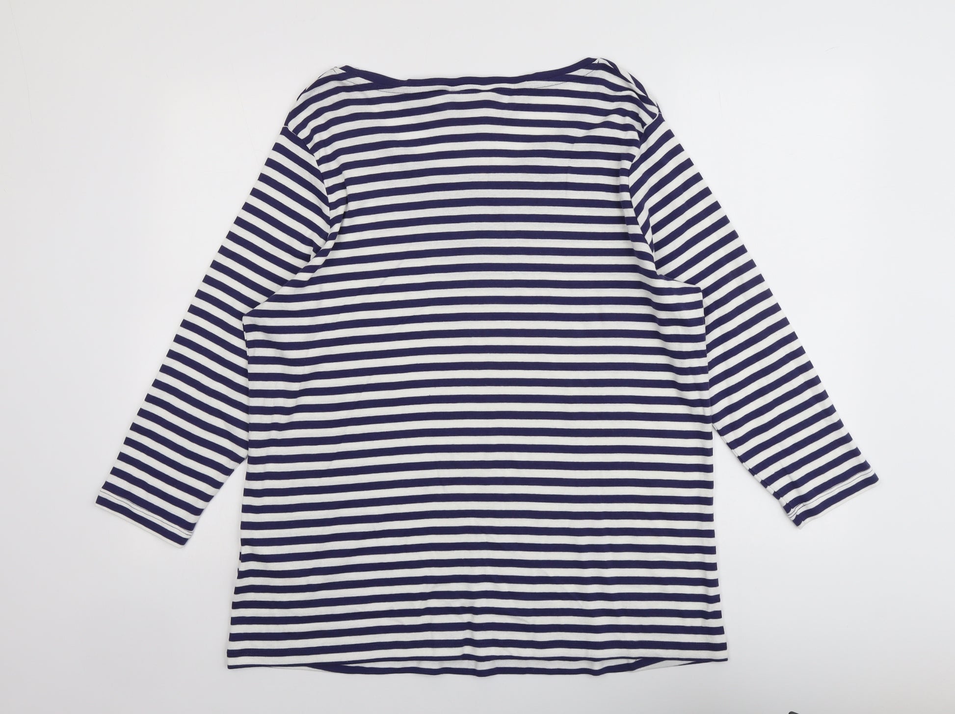 Monsoon Women’s Blue Striped 3/4 Sleeve Cotton Top Size 22