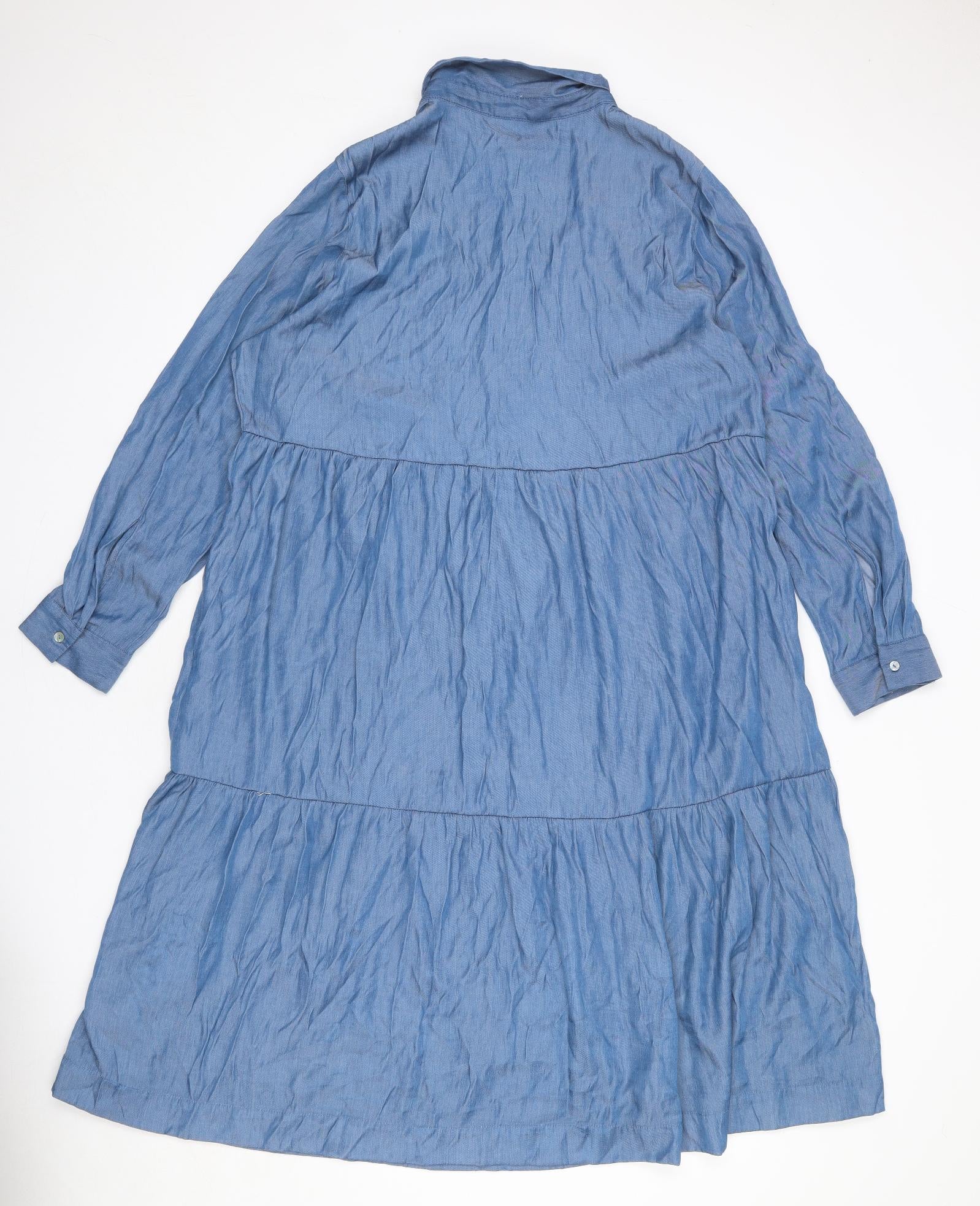 Womens Blue Viscose A-Line Size 20 Collared Button