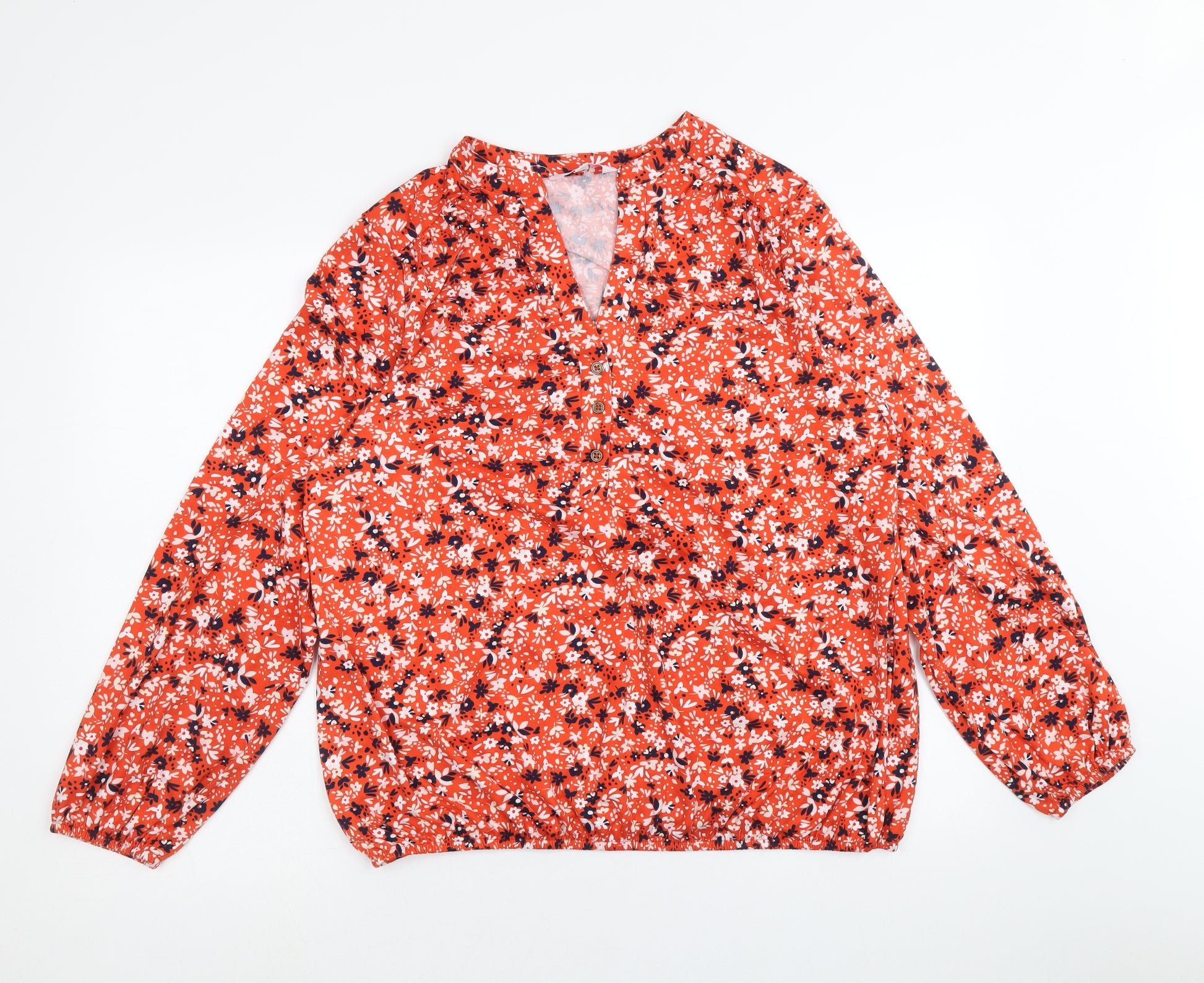 Womens Red Floral Polyester Basic Blouse Size 16 V-Neck - Elastic Hem