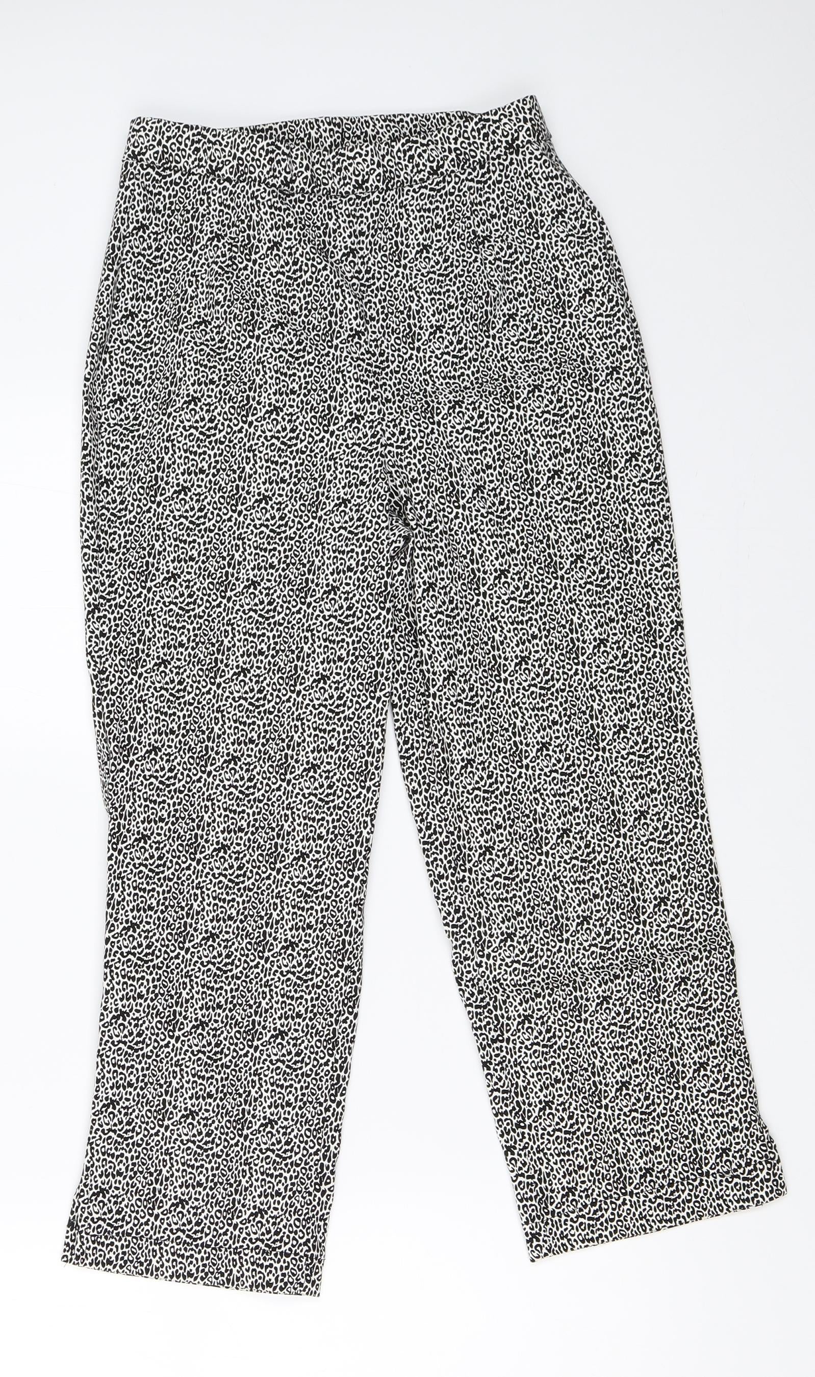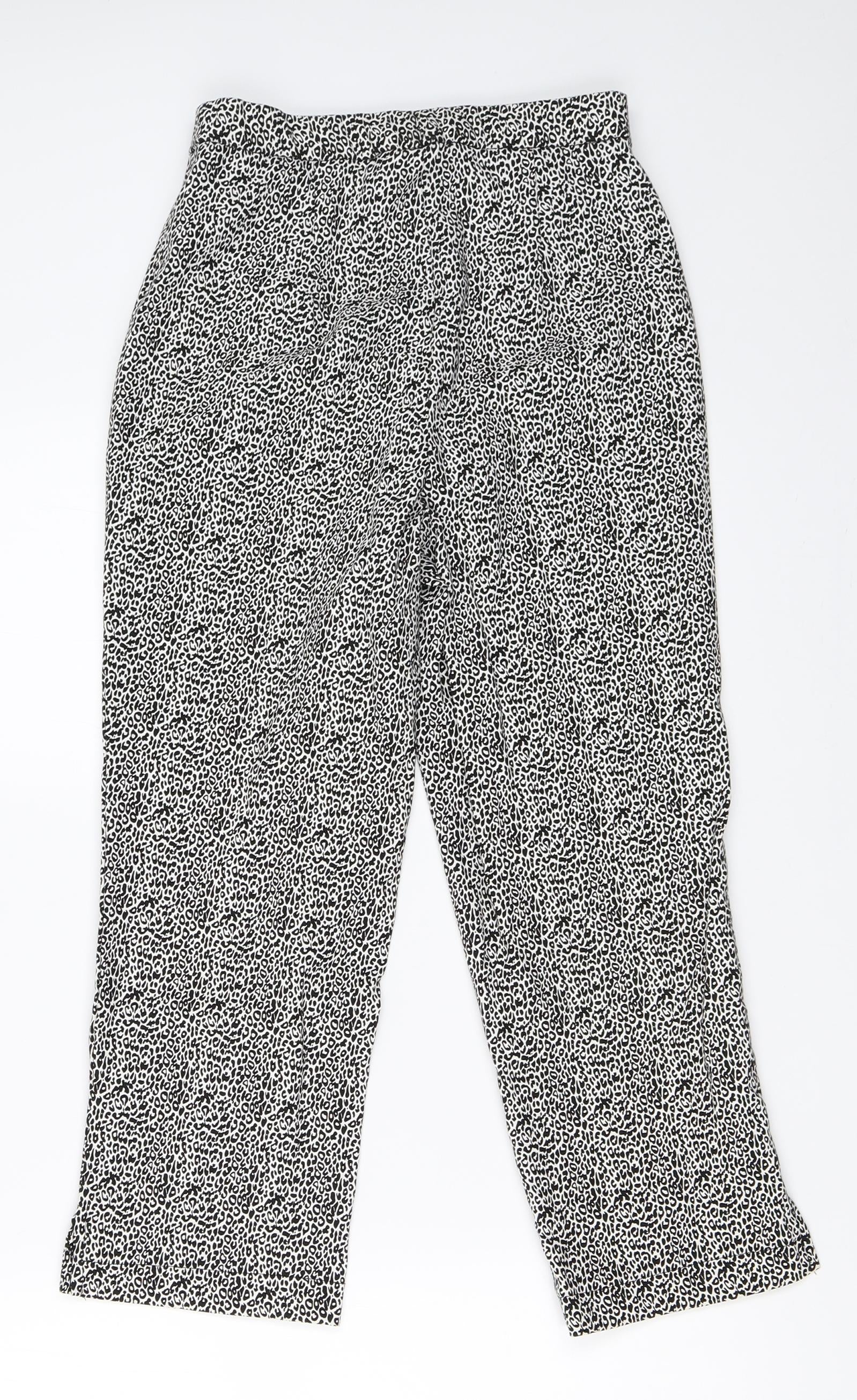 Womens White Animal Print Cropped Trousers Size 10 L21 in