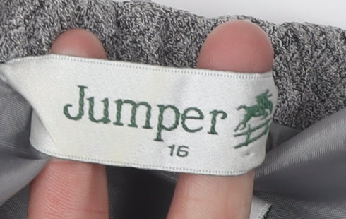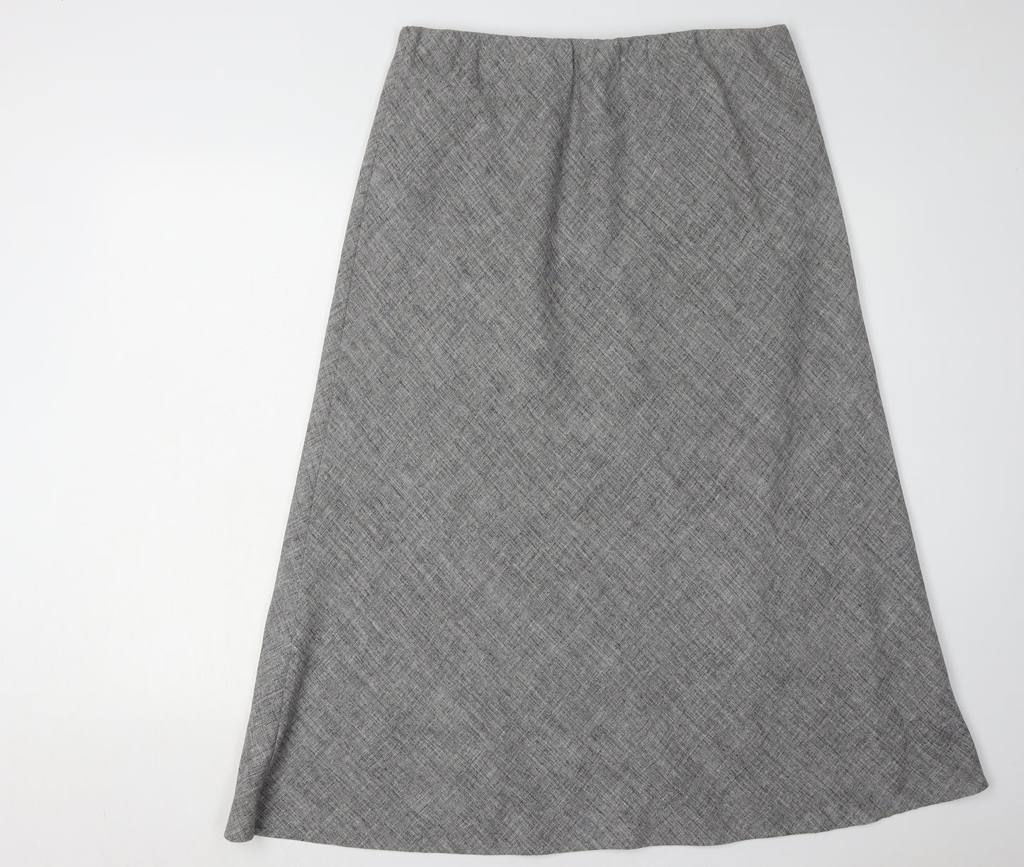 Elevate your wardrobe with this versatile grey A-Line midi skirt from Jumper, designed exclusively for women who appreciate style and comfort. Crafted from 100% polyester, it offers a refined look with its classic A-Line silhouette. The subtle grey hue and no pattern design make it a perfect choice for any occasion, whether it's a business meeting or a casual outing. Its regular size 16 and midi length provide a flattering fit for a wide range of body types. Although pre-loved, this skirt remains in excellent condition. Enjoy the elegance and comfort this piece brings to your outfit for just £15.00.