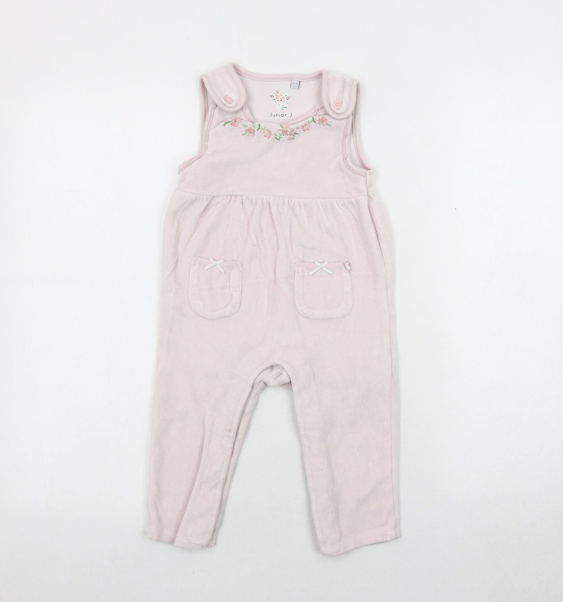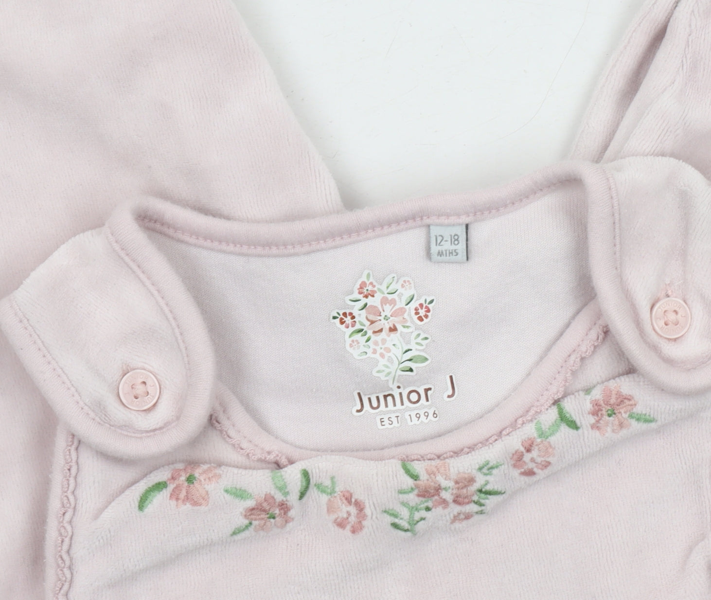 This delightful pink romper by Junior J is perfect for adding a touch of charm to your baby's wardrobe. Designed with a soft velour fabric, it ensures comfort and warmth, making it suitable for all seasons. The delicate floral embroidery adds a sweet touch, perfect for casual outings or playdates. The romper features a convenient button closure, allowing for easy dressing and undressing, making it a practical choice for parents and a comfortable option for your little one. Its sleeveless design and round neckline add to its cute, classic appeal. Crafted with a blend of cotton and polyester, this romper is not only soft but also machine washable, ensuring easy care and maintenance. Ideal for both boys and girls, age 12-18 months, it makes a versatile addition to any toddler's clothing collection. Whether it's a day in the park or a family gathering, this romper will ensure your baby is both comfortable and stylish. With its plush texture and charming design, this Junior J romper is a must-have for any loving parent aiming to dress their child in both style and comfort.