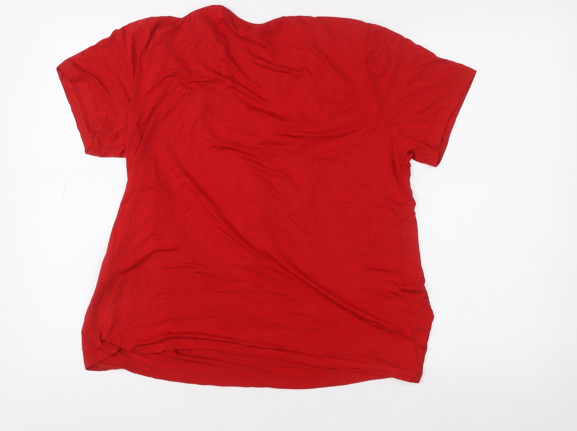 Women’s Red Rhinestone Bow Short Sleeve Viscose Top Size S