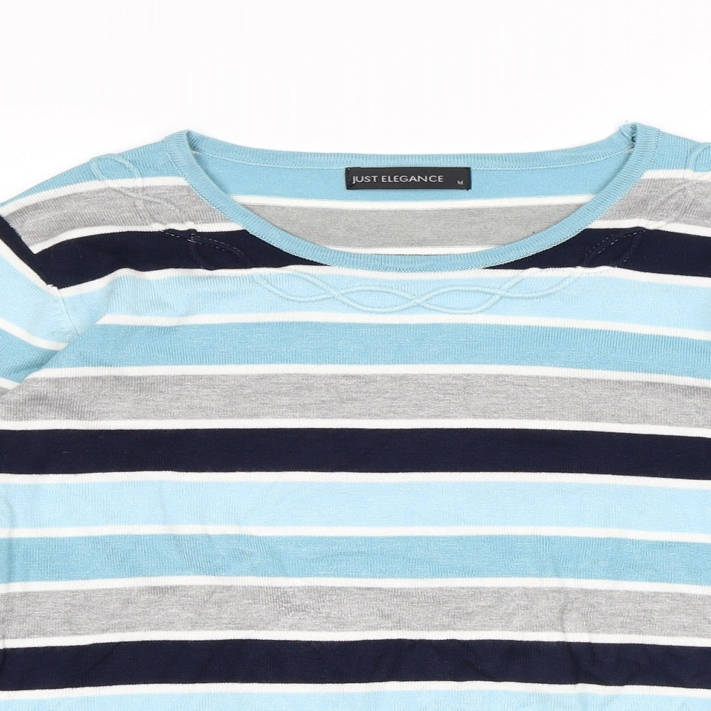 Womens Blue Round Neck Striped Acrylic Pullover Jumper Size M