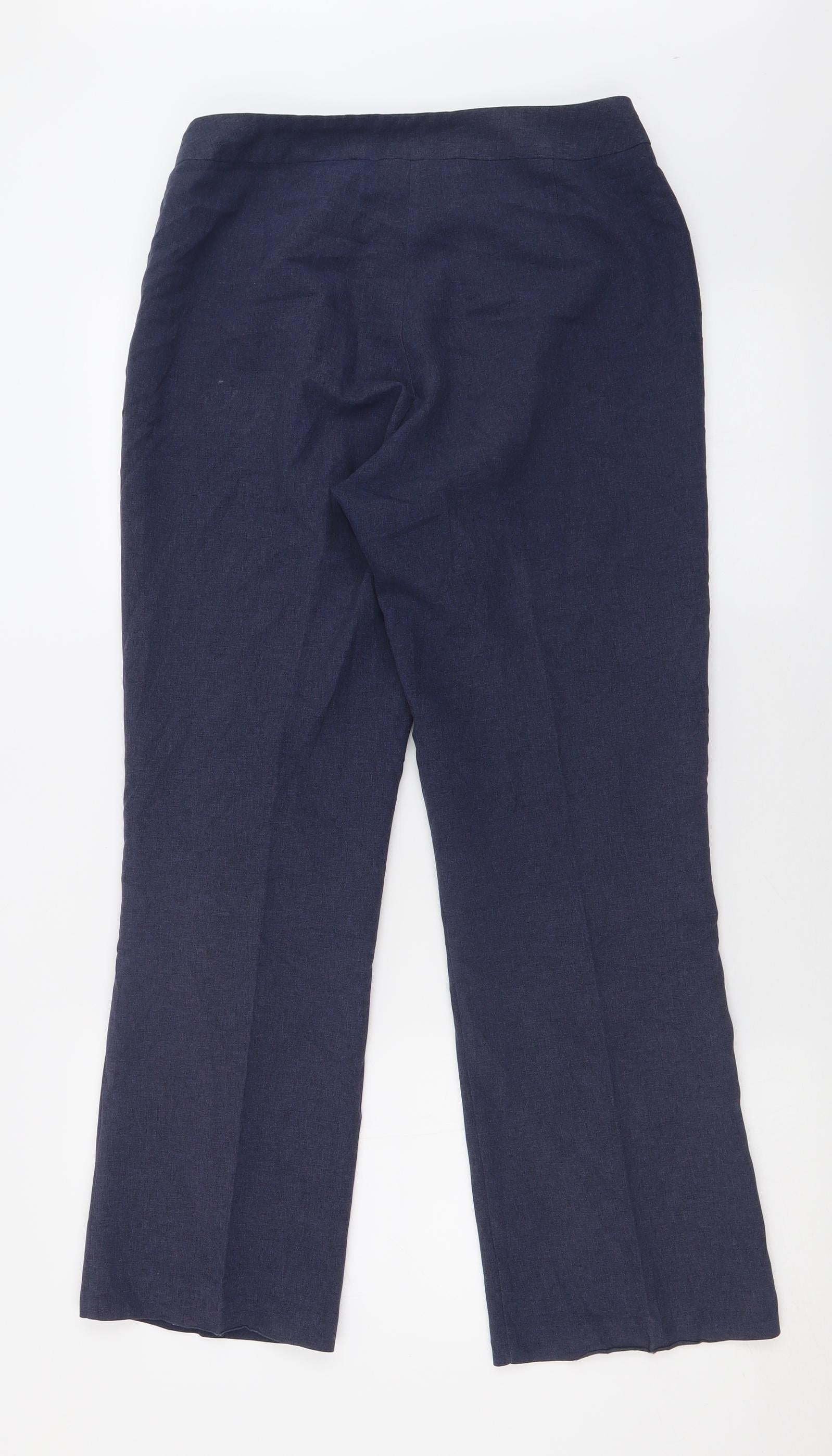 Womens Blue Polyester Trousers Size 12 L29 in Regular Hook & Eye