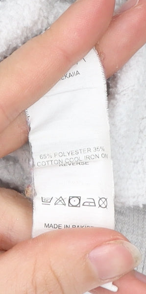 This Kaiia women’s grey pullover sweatshirt in size UK 12 combines comfort with a casual style perfect for everyday wear. Made from a soft blend of 65% polyester and 35% cotton, the fabric ensures durability while maintaining a comfortable feel. The sweatshirt features a classic crew neck design and long raglan sleeves, making it a versatile choice for layering throughout the autumn, winter and spring seasons. Its relaxed regular fit allows for ease of movement while keeping you comfortable during daily activities or lounging. The sweatshirt’s standout feature is the collegiate-style front logo print reading 'San Francisco California 1990,' giving it a university-inspired, travel-theme aesthetic that is effortlessly stylish. Rendered in neutral grey, the colourway provides versatility, easily pairing with jeans, joggers, or leggings for a laid-back casual look. The ribbed cuffs and hem offer a secure fit, while the jersey fabric helps retain its shape after washing. This item does show signs of previous wear, including visible marks and light discolouration on the cuffs and body, but it remains wearable and maintains its overall structure. For those seeking affordable, branded casualwear with modern graphic styling, this Kaiia sweatshirt is an excellent option. Ideal for everyday casual settings, weekend outings, or simply keeping cosy at home, it brings together comfort, style, and an urban collegiate vibe. Upgrade your wardrobe with this versatile yet distinctive Kaiia sweatshirt – a practical piece with a touch of graphic character at a great value.