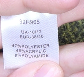 Elevate your wardrobe with this stylish Kaleidoscope Women's Cardigan. Designed in a lush green tone highlighted by a captivating check pattern, this cardigan combines style and comfort with seamless grace. Its long sleeves ensure a cozy fit, ideal for layering during cooler seasons. Crafted from a quality blend of 47% polyester, 45% acrylic, and 8% polyamide, it guarantees durability while maintaining a soft feel. While tailored for women, its versatile design makes it a splendid pick for a wide array of occasions. Whether you're running errands or simply stepping out for a casual meet-up, this cardi is your go-to choice. The cardigan doesn’t feature any visible tags, implying prior usability, yet its condition is deemed excellent, promising enduring sartorial satisfaction. Priced affordably, it beckons a blend of elegance and practicality to any wardrobe, ensuring its place as a distinct favourite in both style and utility.
