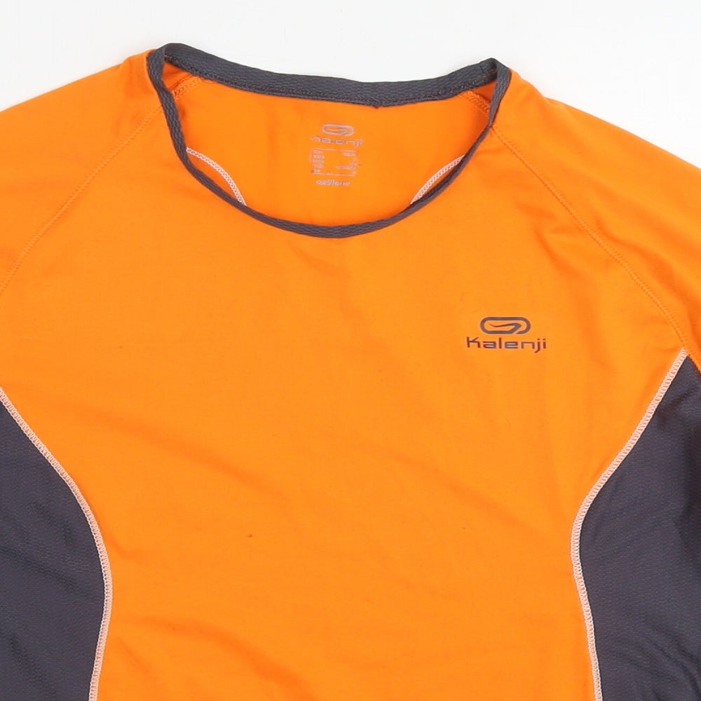 Womens Orange Polyester Basic T-Shirt Size S Round Neck Pullover