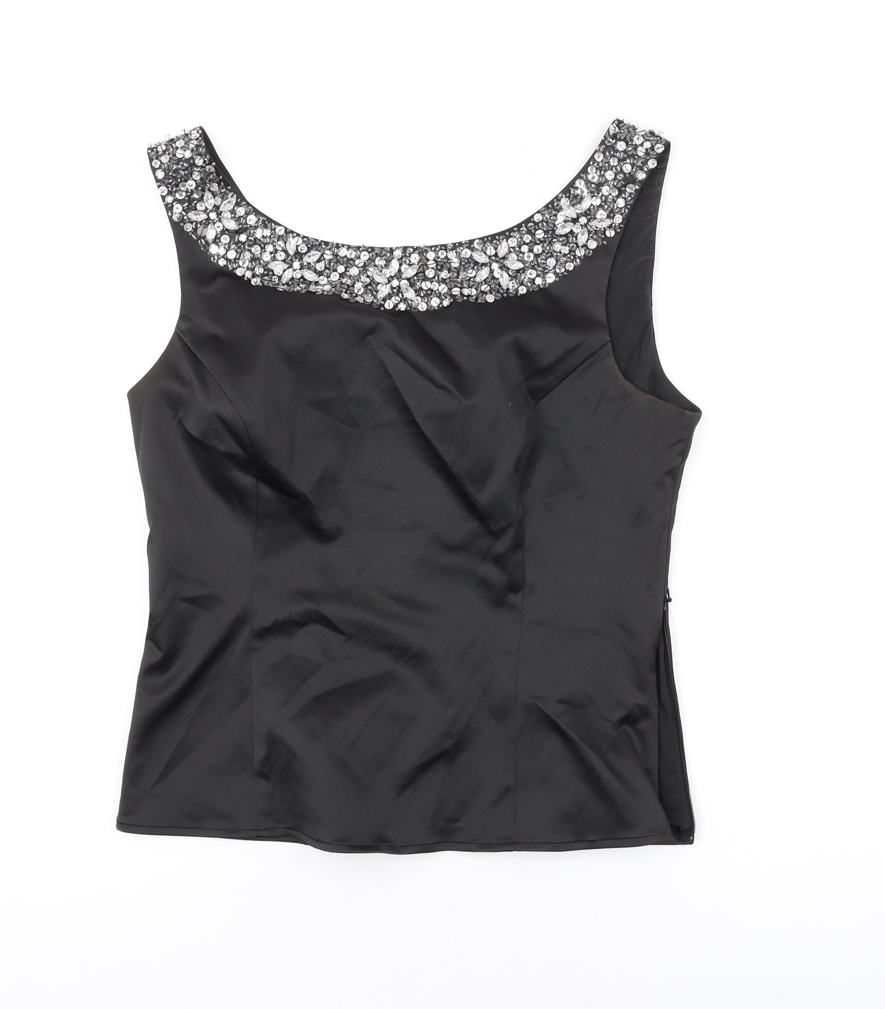 Womens Black Polyester Basic Tank Size 12 Scoop Neck