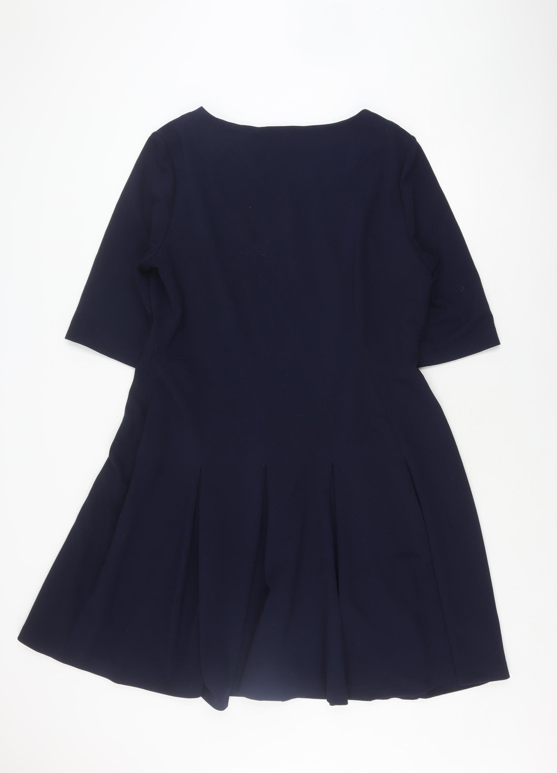 Elevate your wardrobe with this elegant Kaliko Fit & Flare dress, perfect for any professional setting. Constructed from a soft blend of polyester and elastane, the fabric offers a slight stretch, ensuring a comfortable and flattering fit. The classic round neckline and knee-length design add a timeless appeal, making this dress suitable for corporate events or a day at the office. The rich blue colour exudes sophistication, while the simple silhouette allows for versatile styling options. Pair with heels and a blazer for an effortless business-ready look or accessorise with statement jewellery for a chic evening ensemble. With short sleeves, this dress provides coverage while keeping you cool throughout the day. Designed for the contemporary woman, it’s machine washable, ensuring easy maintenance. The zip closure at the back offers convenience and a tailored fit. A stylish and functional addition to any wardrobe.