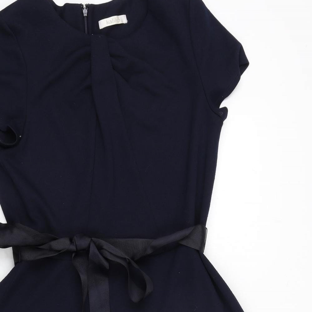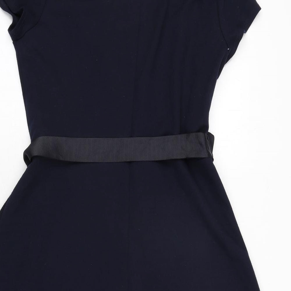 Womens Blue Polyester A-Line Size 14 Round Neck Zip - Belted